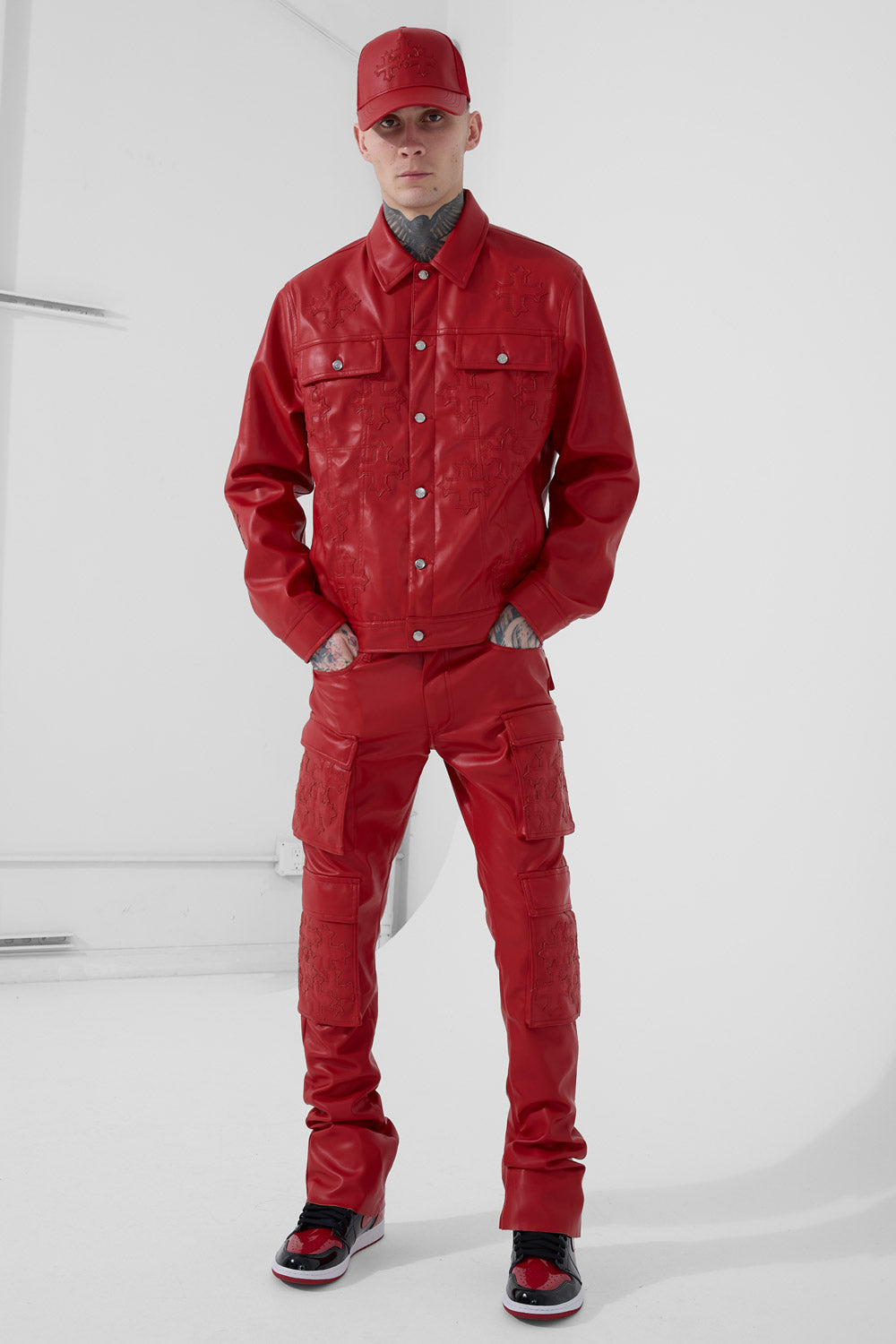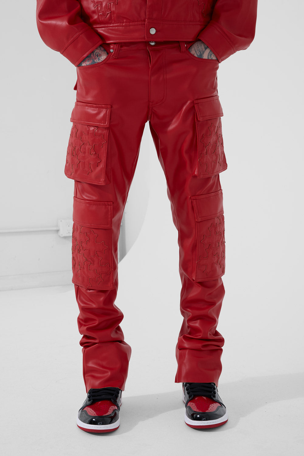 Skinny Stacked Eden Cargo Pants (Red)