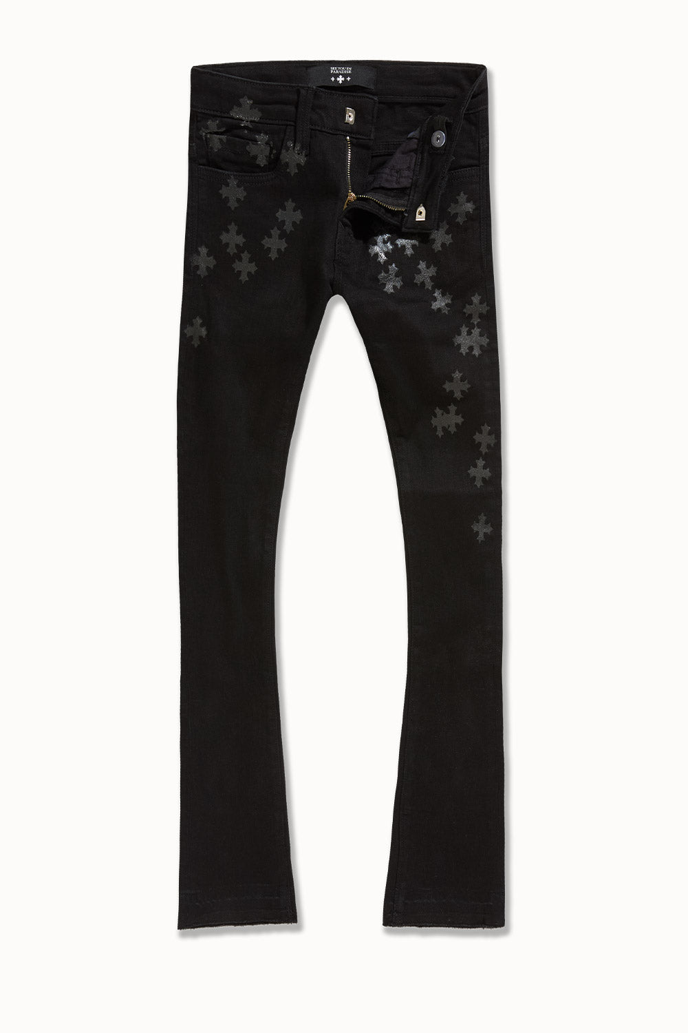 Kids Super Skinny Stacked Forbidden Fruit Denim (Black Shadow)