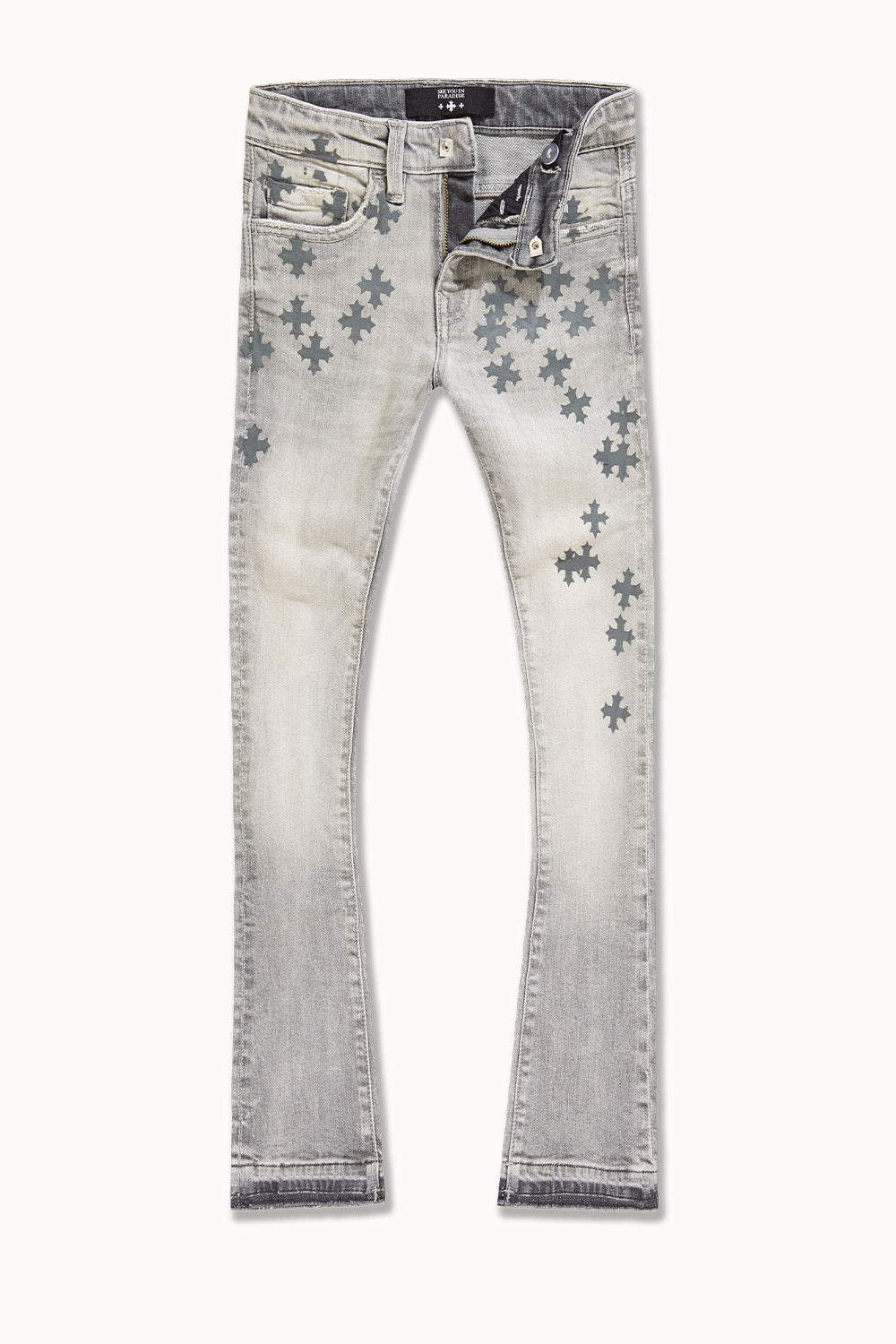 Kids Super Skinny Stacked Forbidden Fruit Denim (Cement Wash)