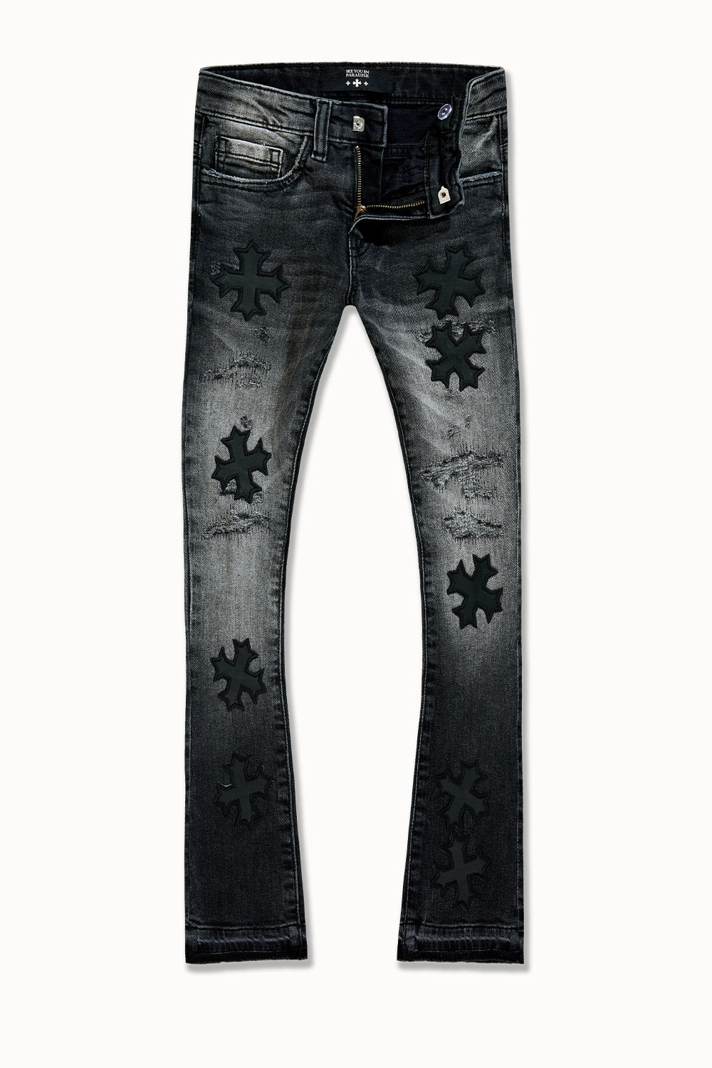 Kids Super Skinny Stacked Eden Denim (Black Shadow)