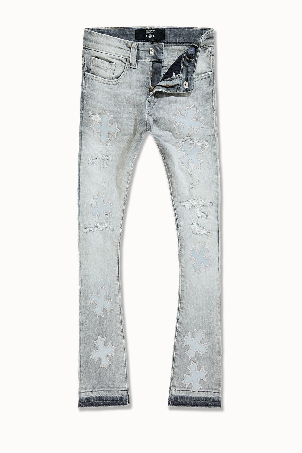 Kids Super Skinny Stacked Eden Denim (Cement Wash)
