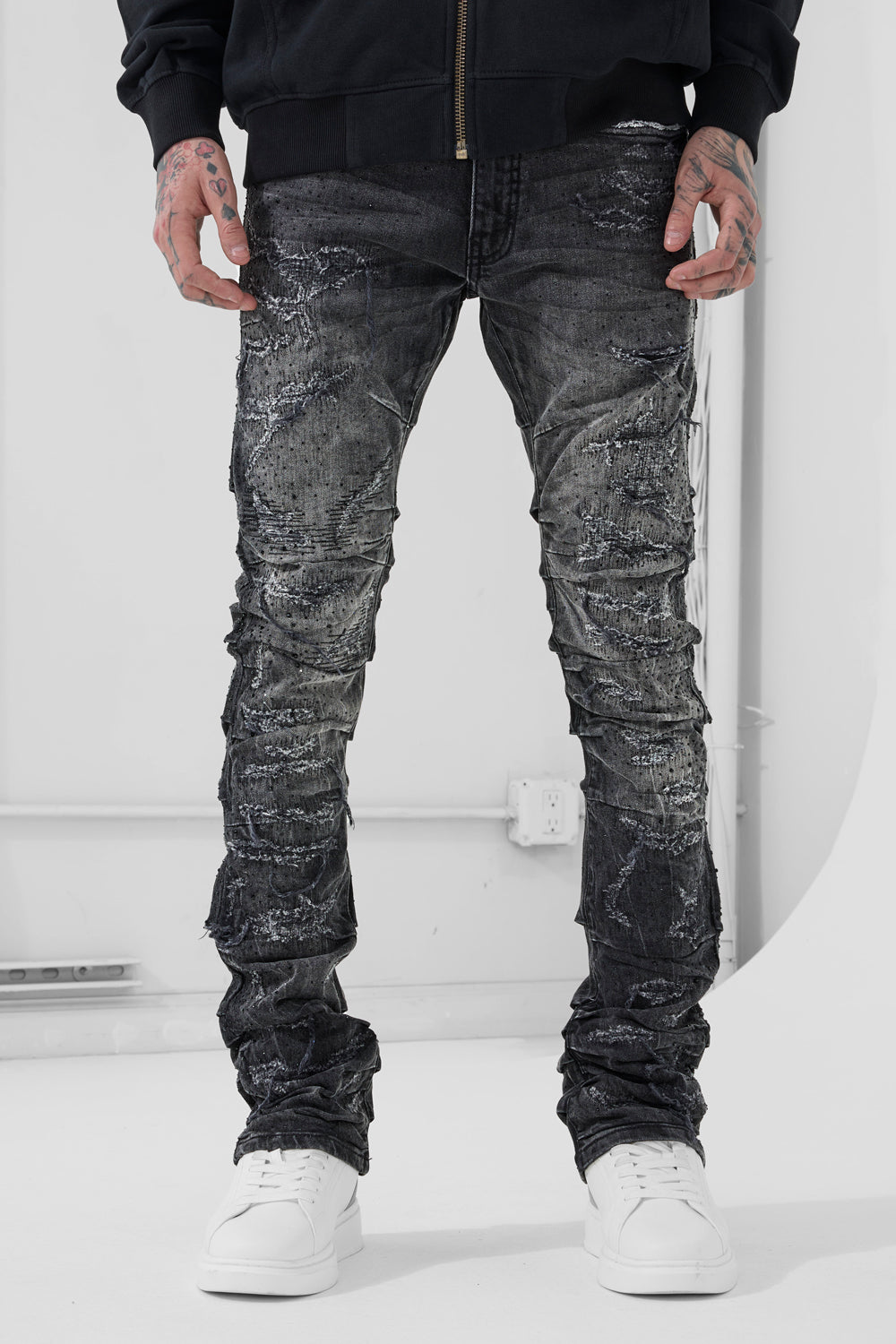 Super Skinny Stacked Brilliance Denim (Black Shadow)