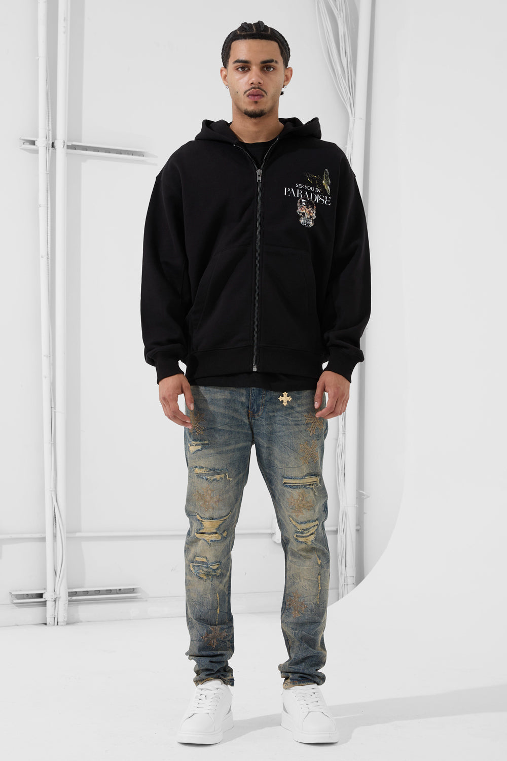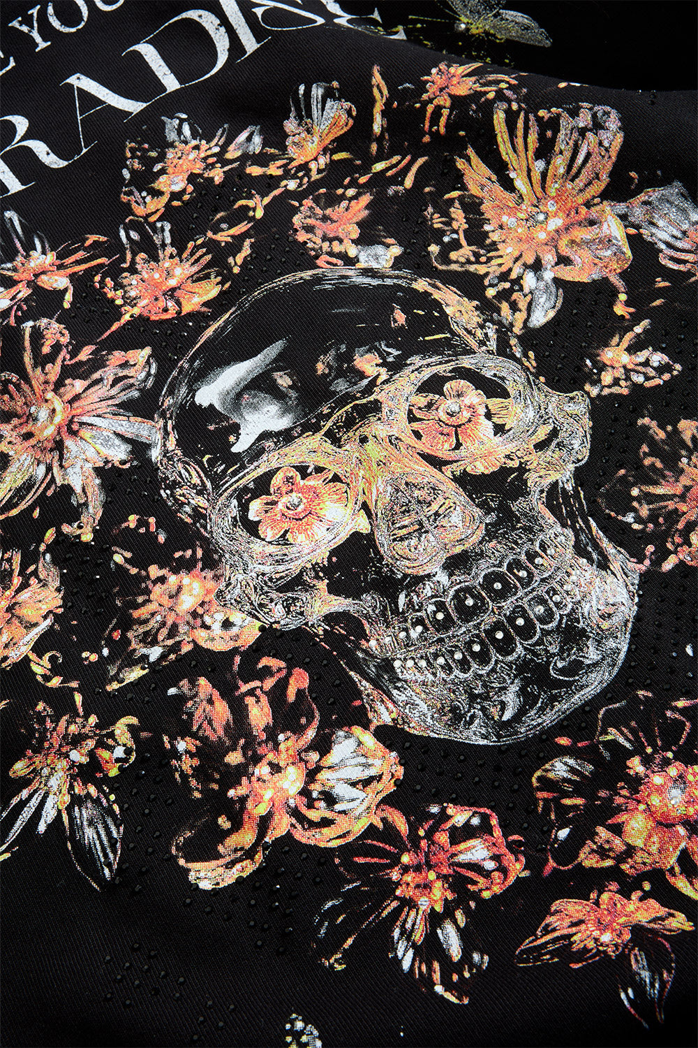 - Embellished with sparkling rhinestones and custom screen printing throughout