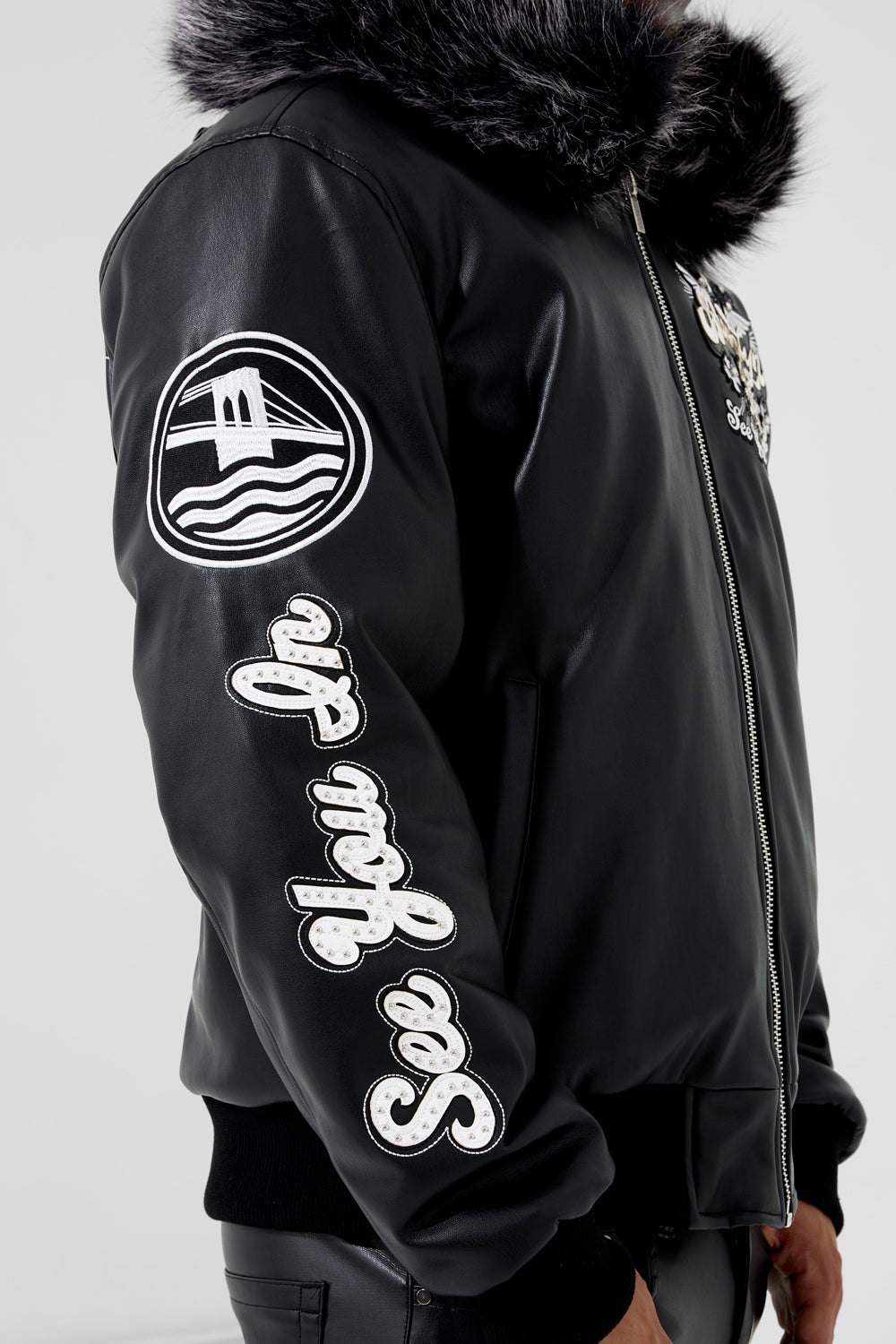- Embellished with rhinestone, embroidery and Chenille patches through