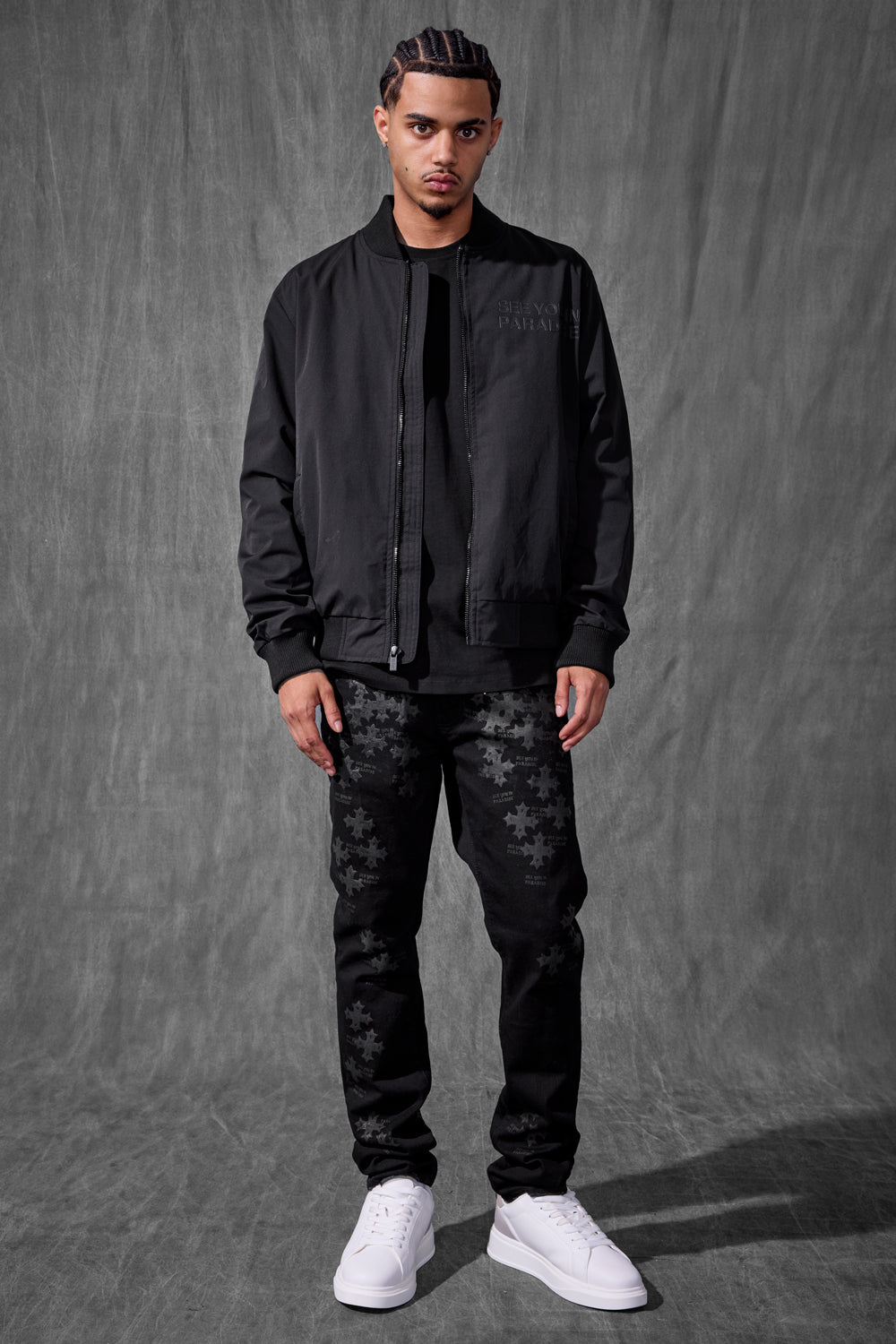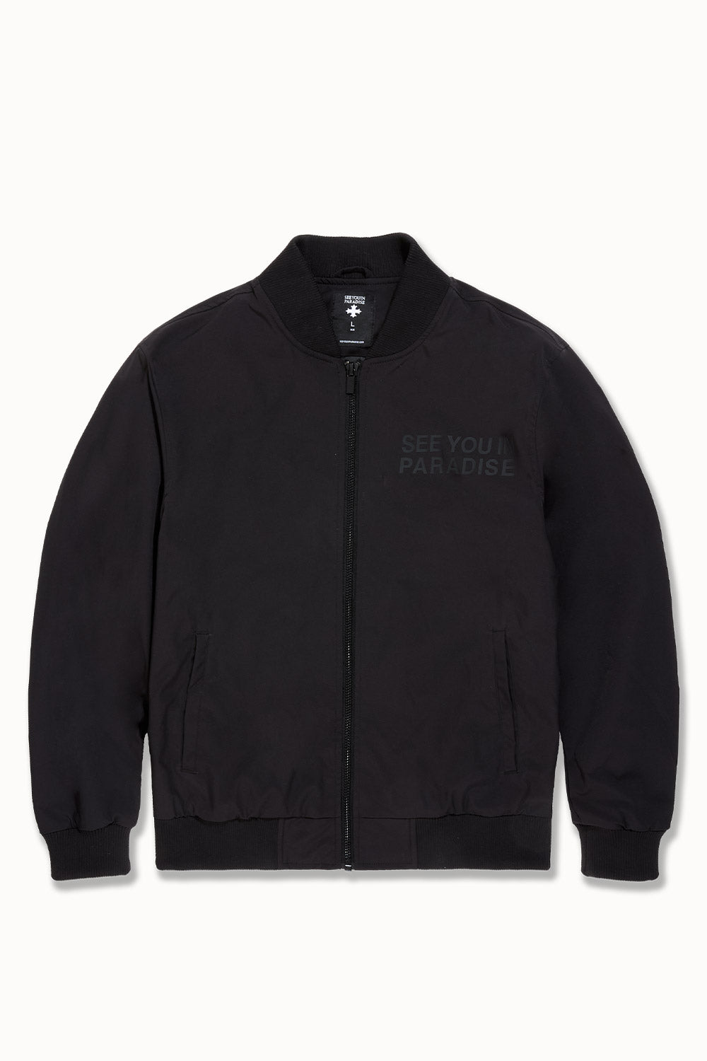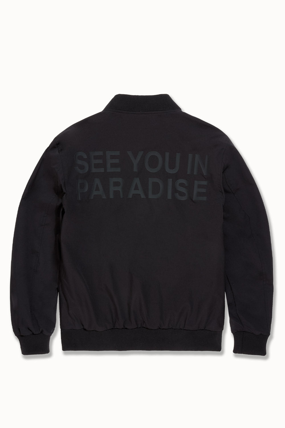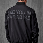 Cut in a lightweight bomber silhouette with sleek tailoring, this jacket delivers that See You In Paradise attitude without saying a word. The high-density tonal print on both the chest and back provides an elevated touch of bandage-worthy branding—visible only when worn right. Constructed in breathable fabric, it layers effortlessly and plays well with the transition from daylight to nightlife. Offered in four season-defining colors—Black, Light Grey, Moon Rock, and Light Pink—this bomber is your go-to mood shifter. Whether you're pairing it with minimalist denim or building a full-on set, it’s made to hit where you show up: clean, confident, and compact. This piece sets the tone—and the temperature—for what Paradise means now