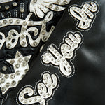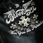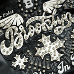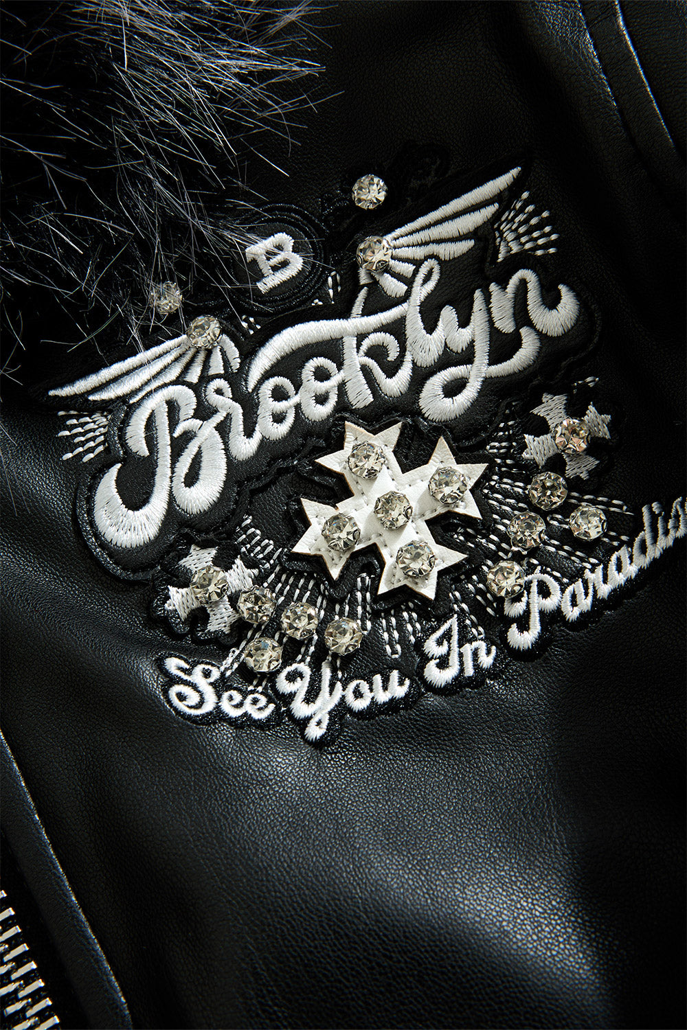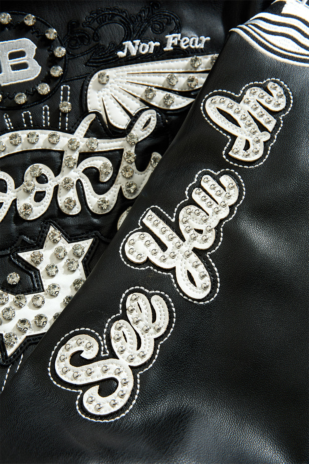 - Embellished with rhinestone, embroidery and Chenille patches through