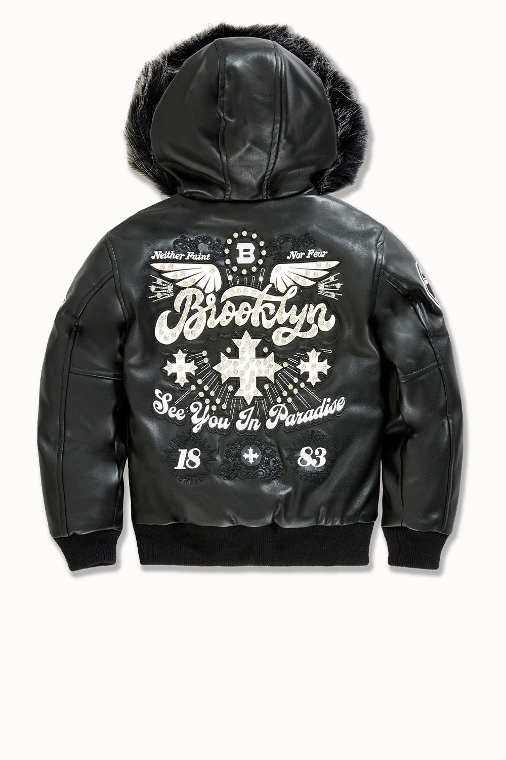 Kids Crooklyn Hooded Bomber Jacket (Black)