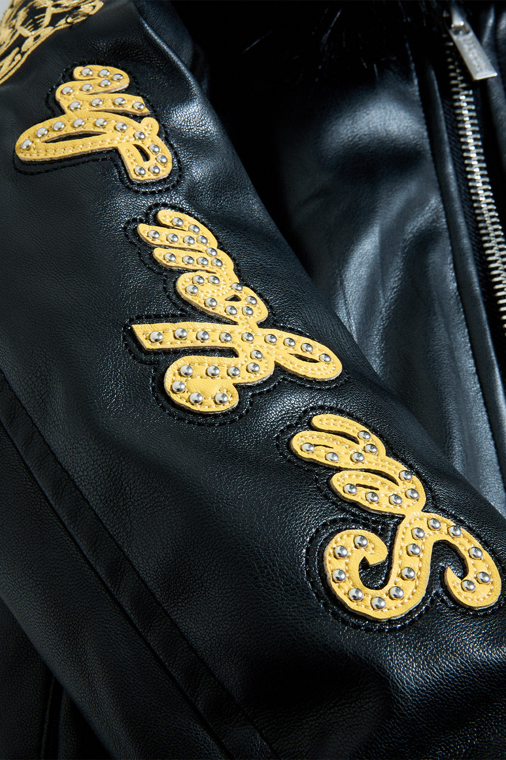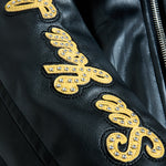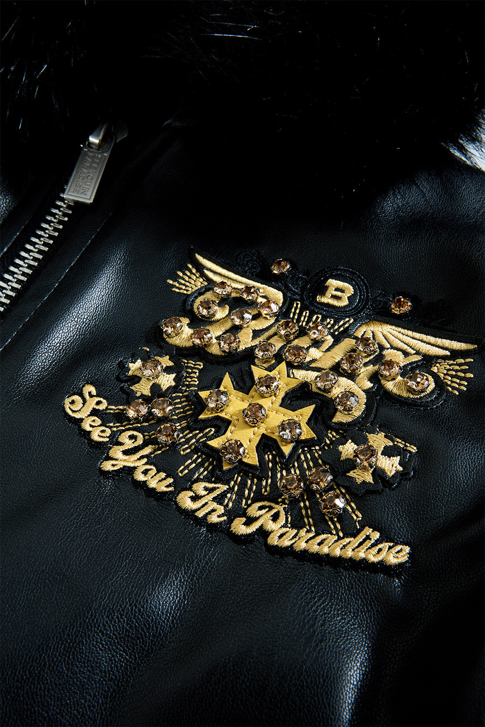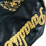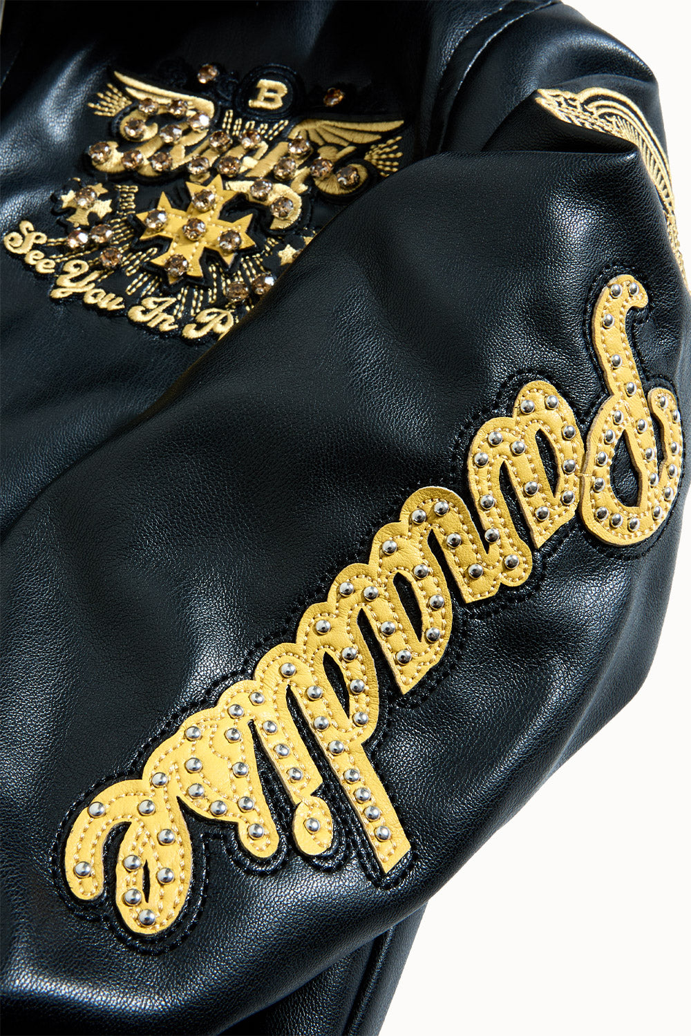 - Embellished with rhinestone, embroidery and Chenille patches through