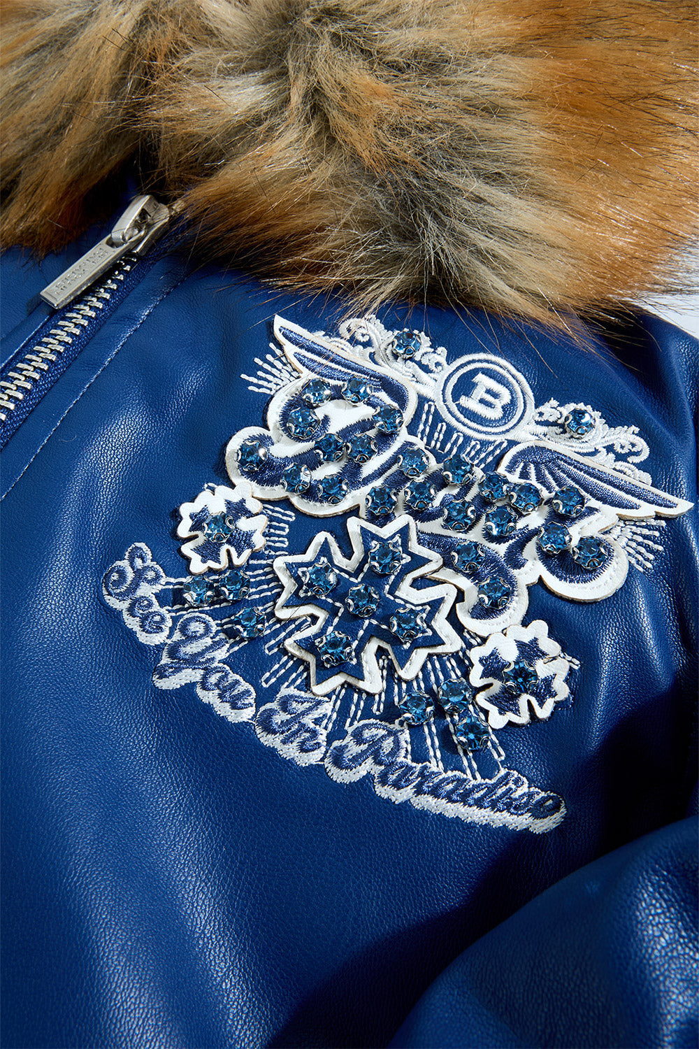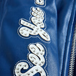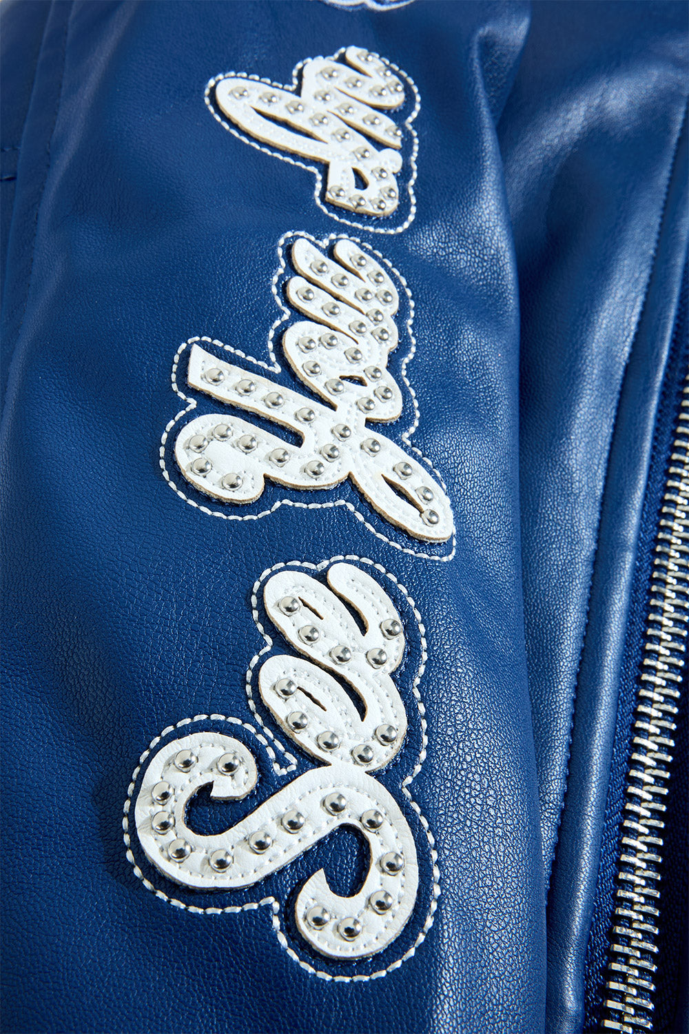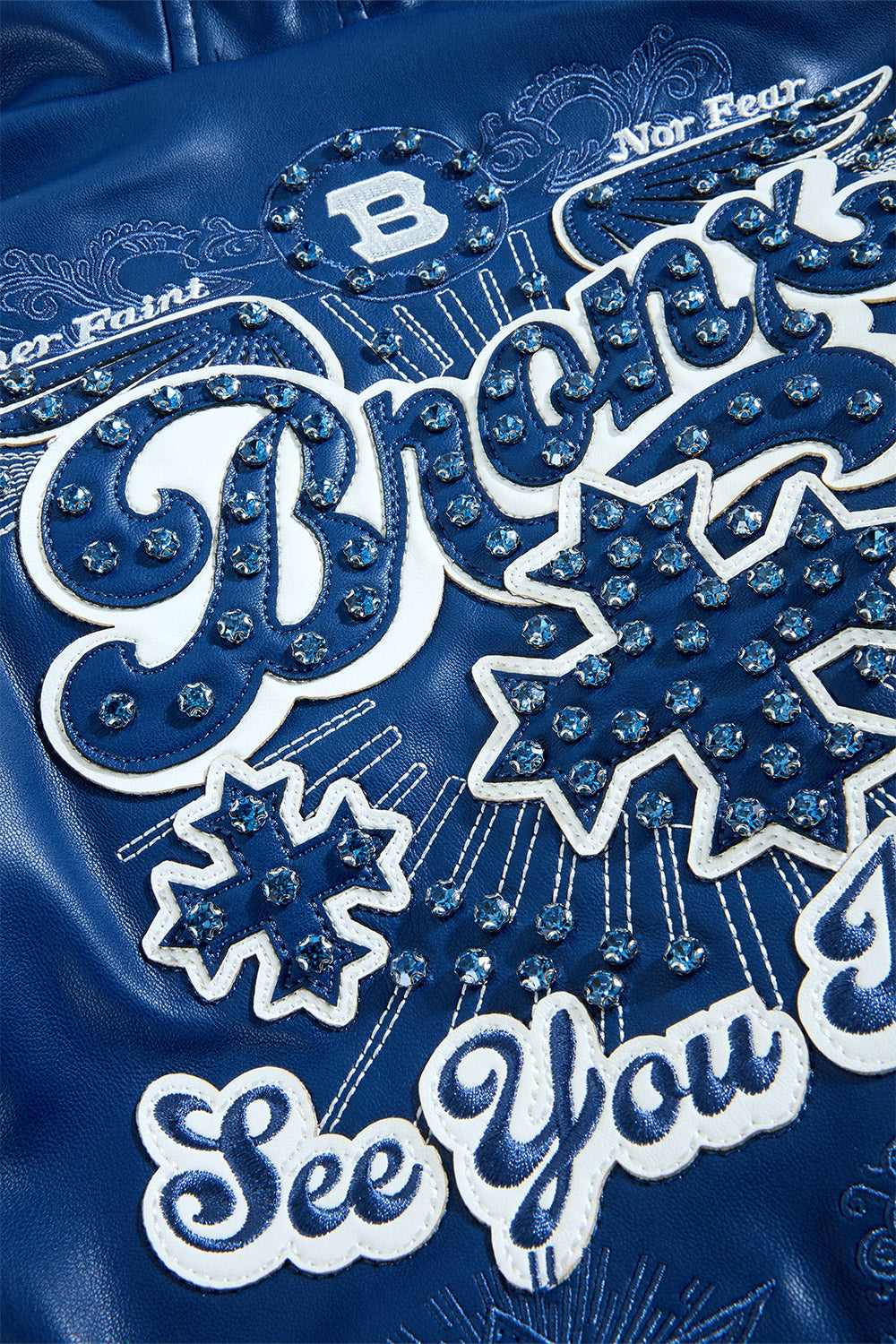 - Embellished with rhinestone, embroidery and Chenille patches through
