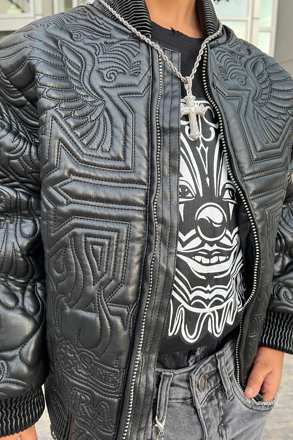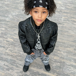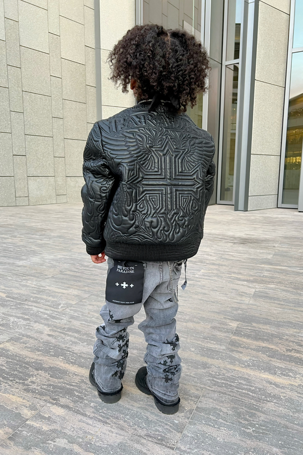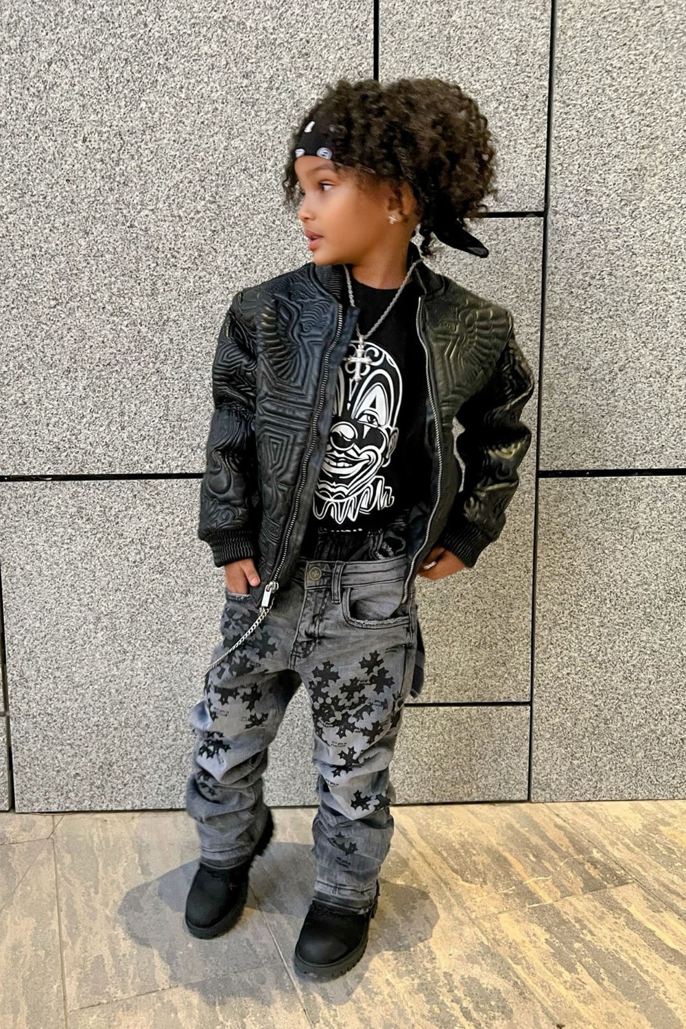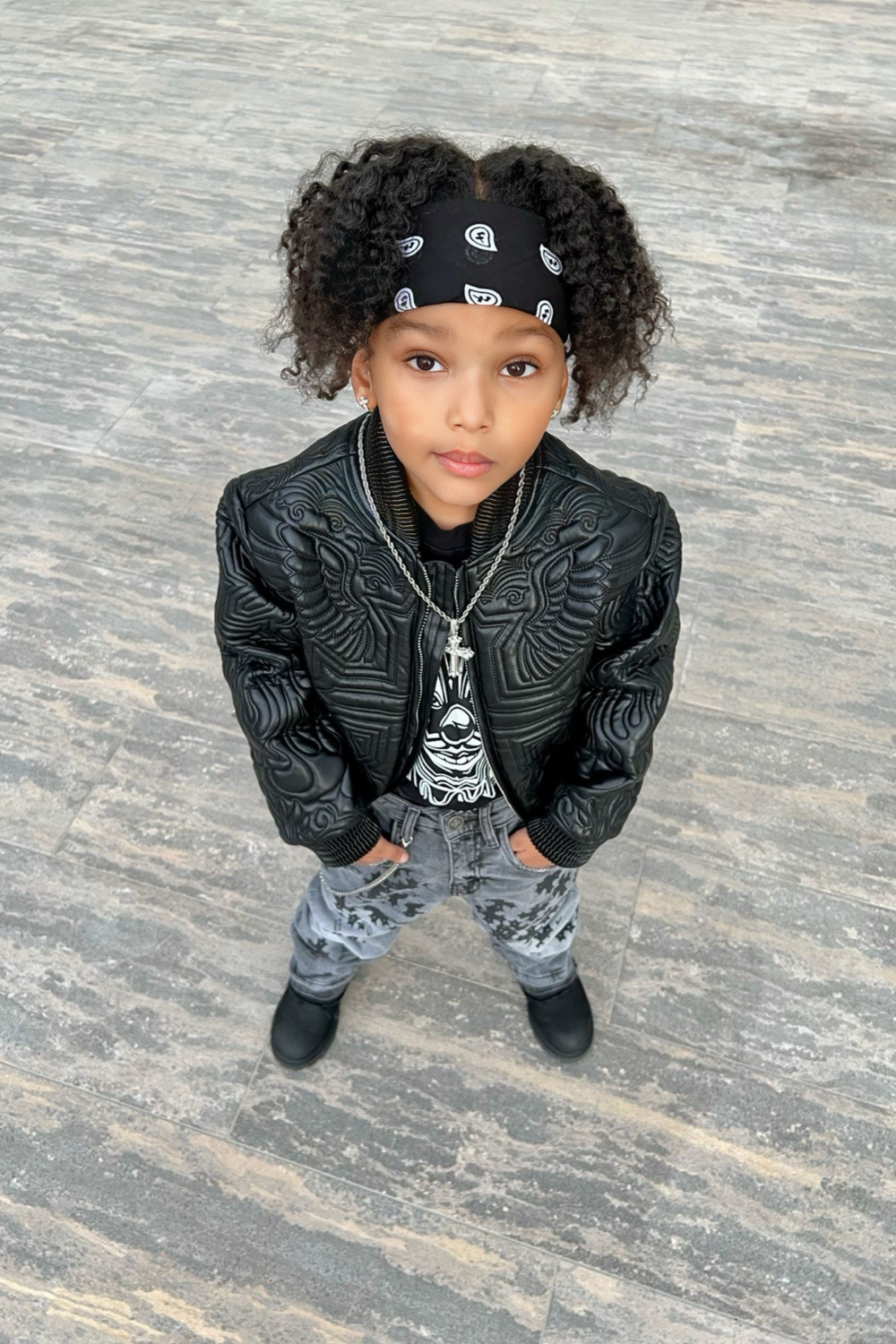 *Iverson is wearing our Kids Sinister Bomber Jacket (Black) in Size 8.