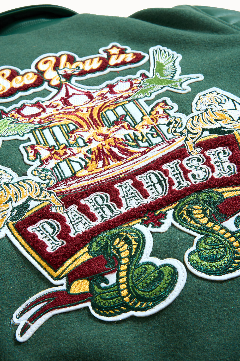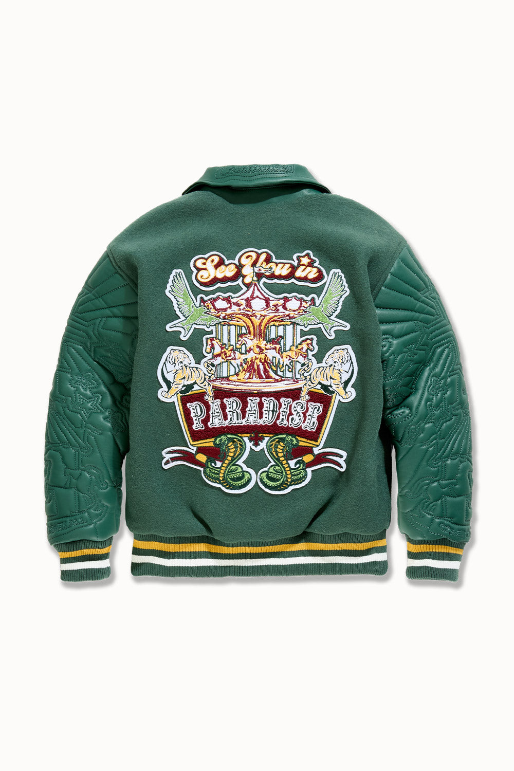 Kids Smoke & Mirrors Varsity Jacket (Dark Green)