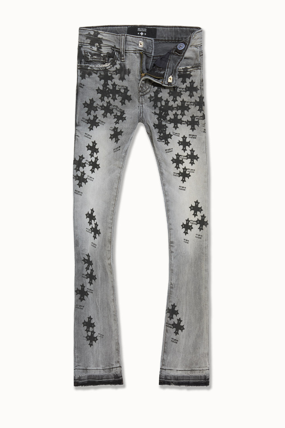 We took the same bold fit and premium details from our men’s Super Skinny Stacked Paradise Denim and scaled it down for the young ones ready to step into their own spotlight. Designed with a fitted leg and extra length to stack just right at the ankle, this denim gives kids that grown-up drip without compromising comfort. The stretch-infused fabric keeps things flexible for all-day movement—on the playground, at the party, or wherever they’re making noise. Offered in the same head-turning washes as the adult version, this denim is perfect for the mini-me moment—whether you’re stepping out side-by-side or just passing down good taste. Clean details, elevated design, and attitude to spare—this is Paradise made pint-sized.