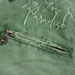 - "Paradise" on both sleeves embellished with glistening rhinestones