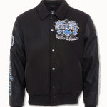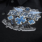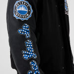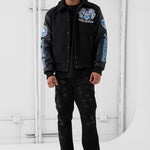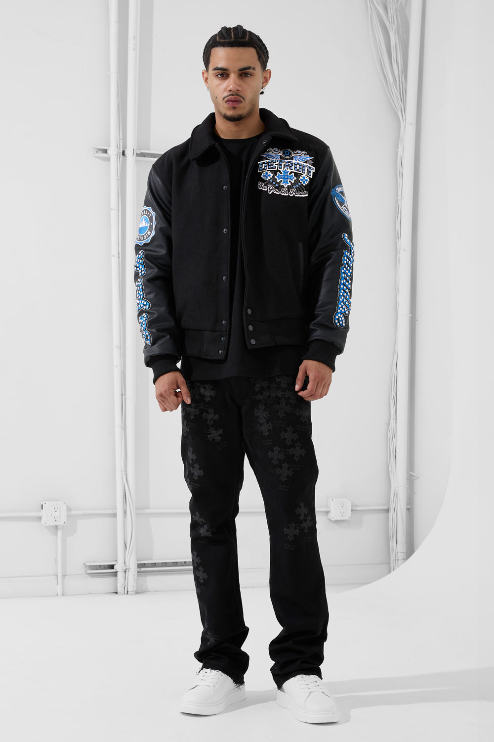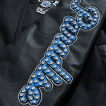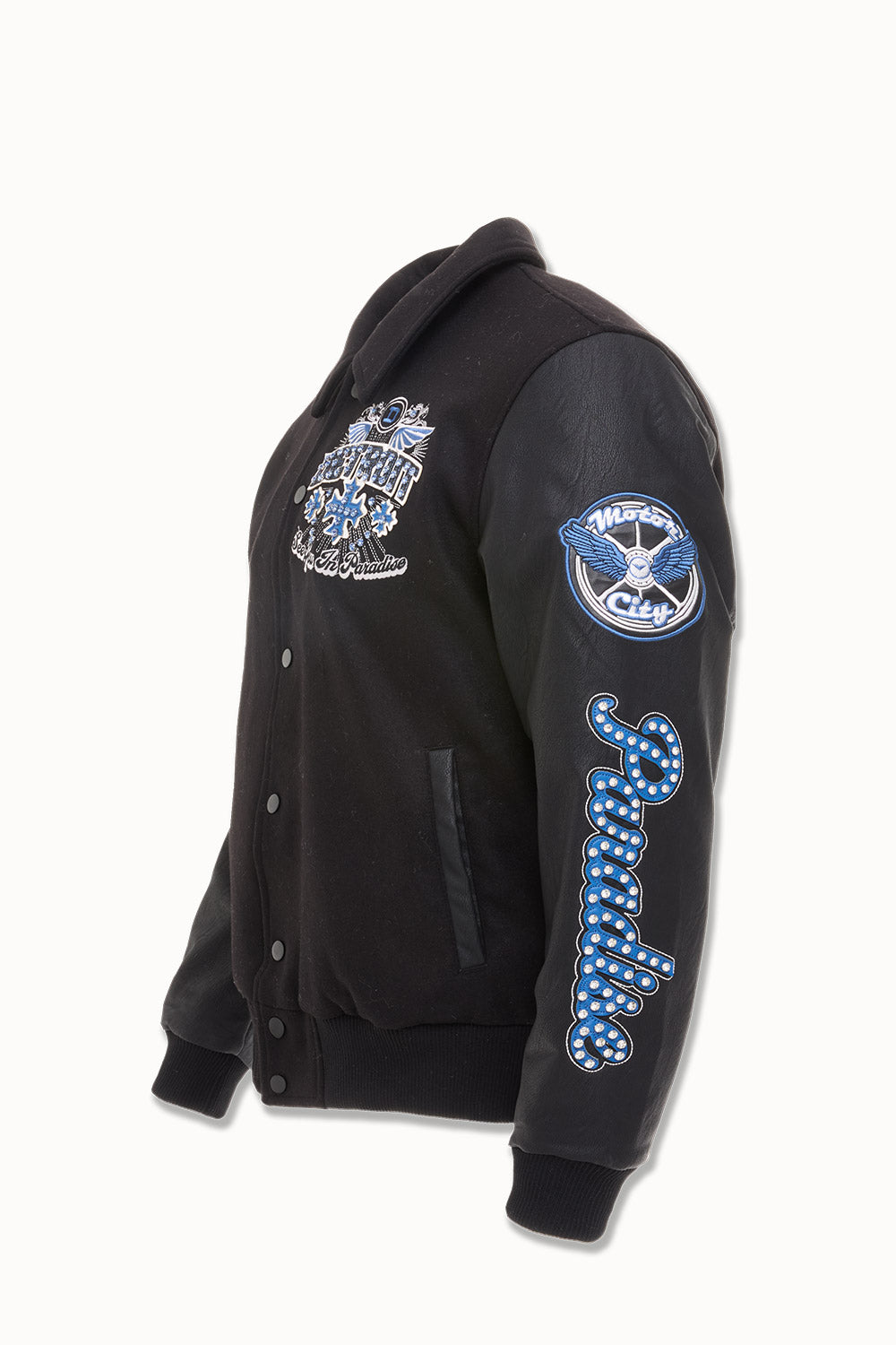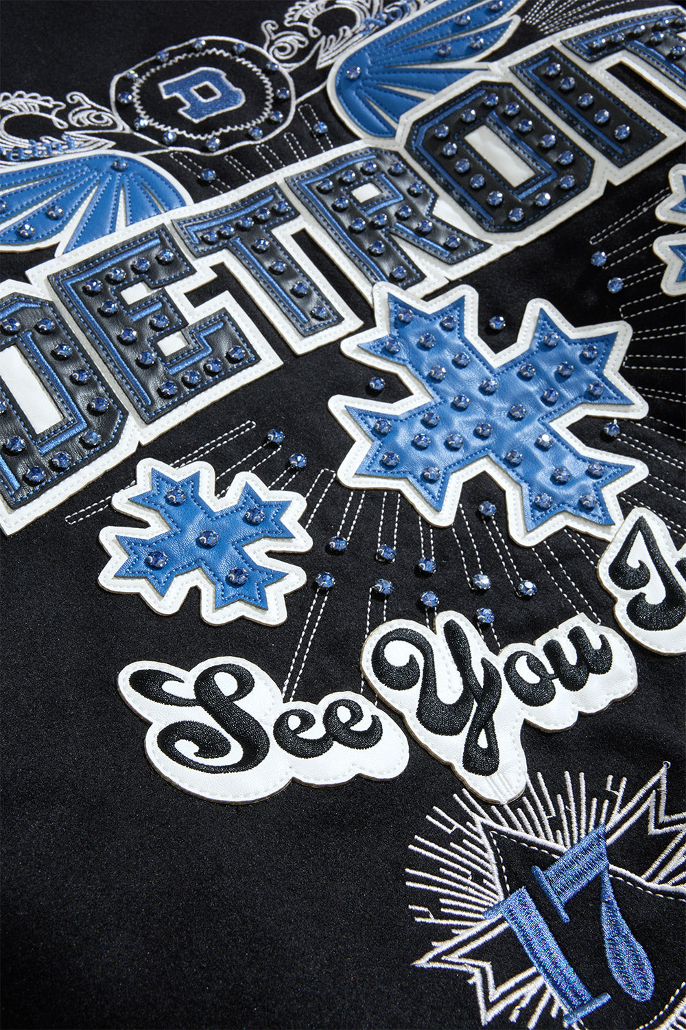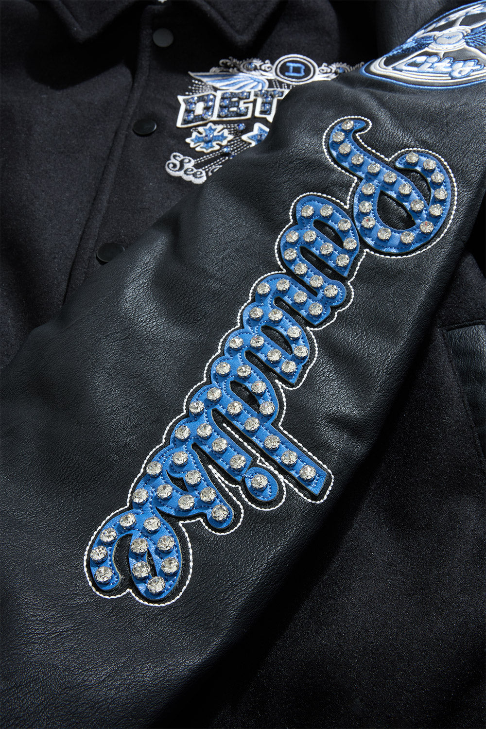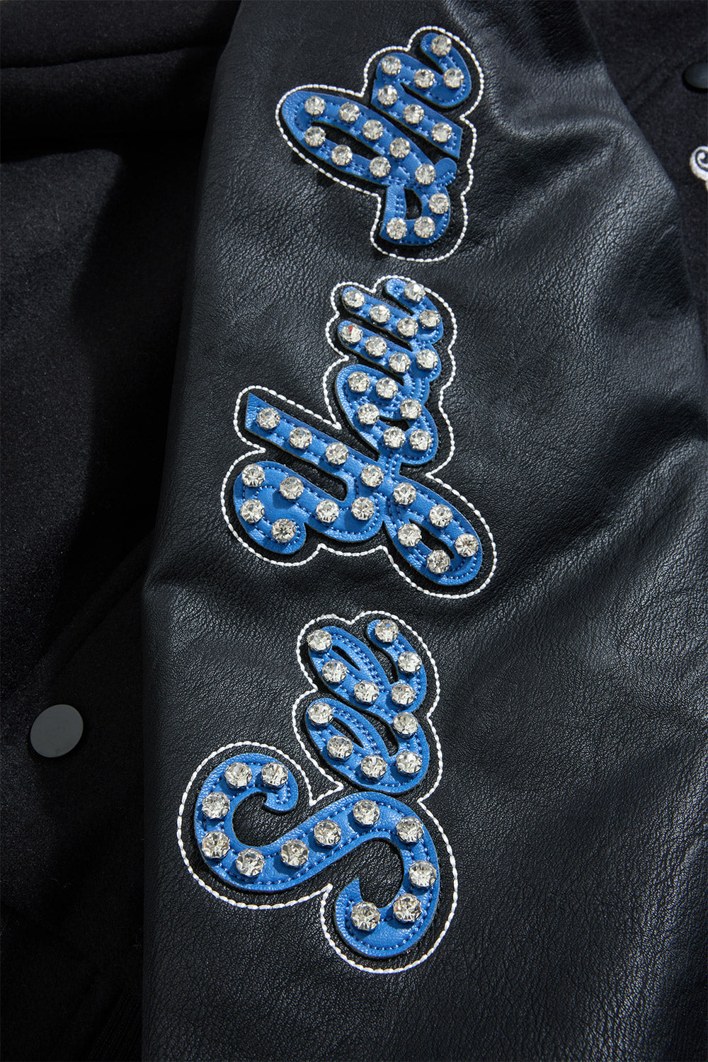 - Embellished with rhinestones, embroidery and Chenille Patches throughout