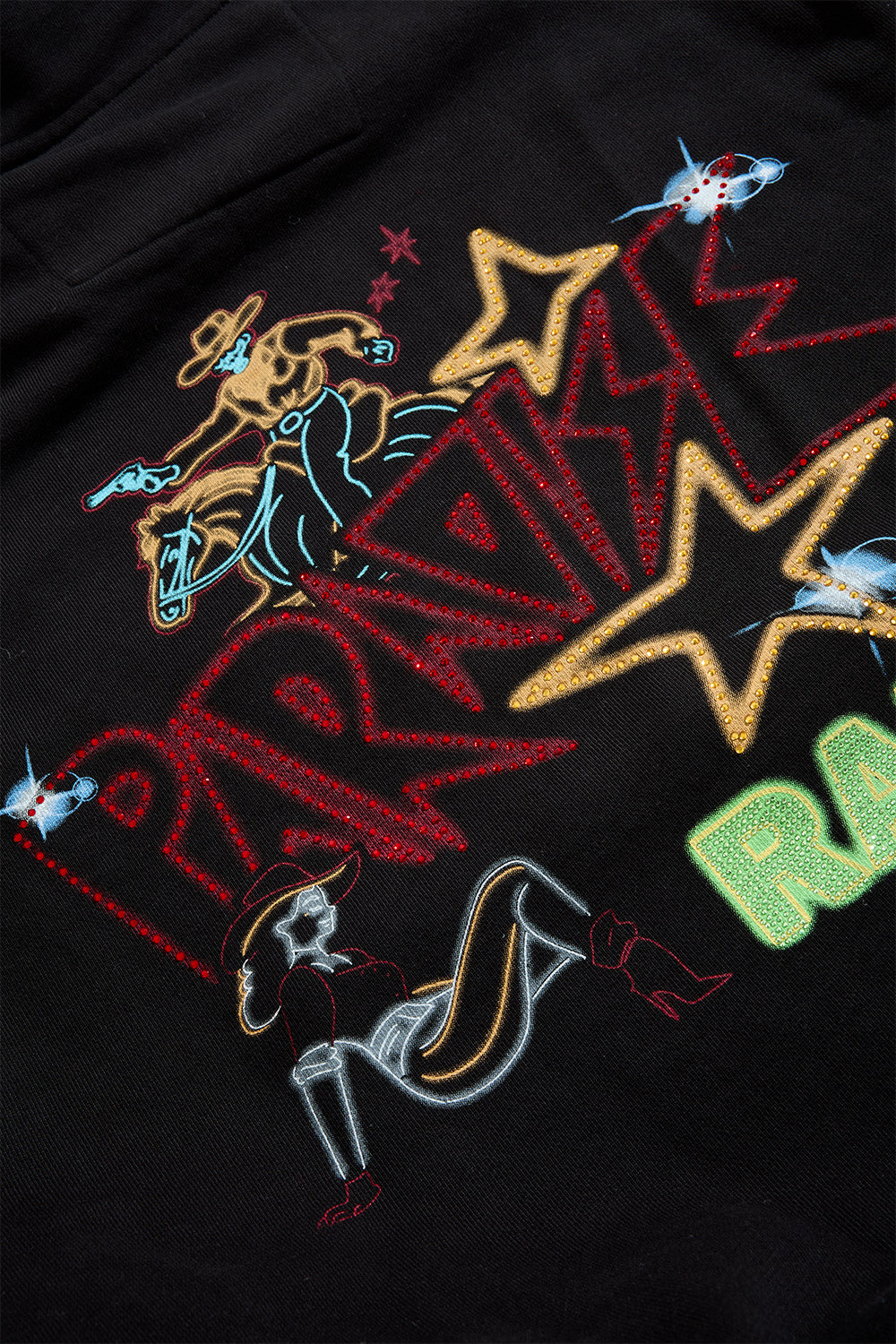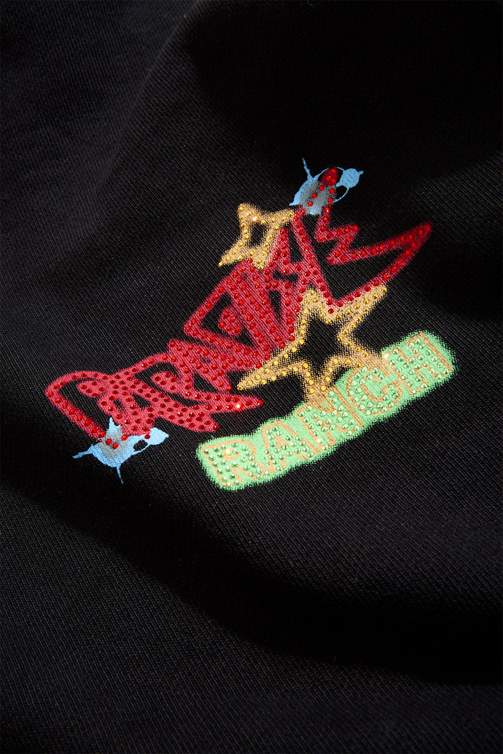 - Embellished with sparkling rhinestones and custom embroidery throughout