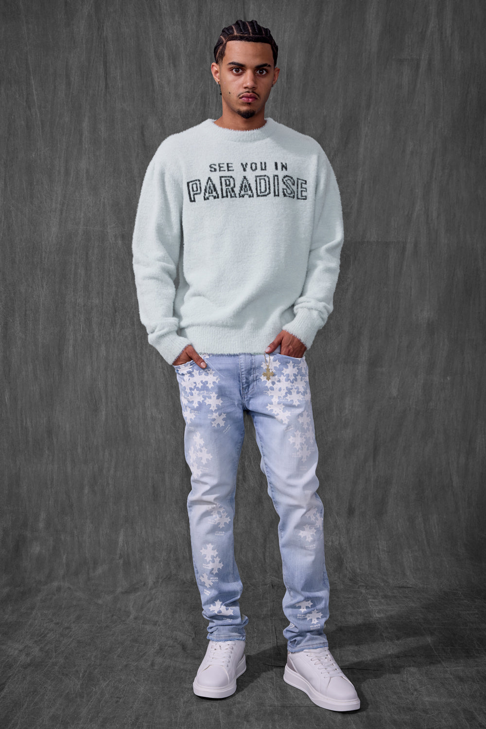 This isn’t your average fuzzy crewneck—it’s Paradise defined by touch. Constructed from ultra-soft, deep-pile fabric, the Plush Crewneck feels like a hug that speaks volumes. Designed with a relaxed fit and clean lines, it layers effortlessly or stands alone with confidence. The subtle, tonal “See You In Paradise” embroidery on the chest adds that quiet flex—luxury you can feel, branding you feel good wearing. Available in seven mood-ready colorways, this sweater bridges the gap between feel-good comfort and refined style. Pull it on, step out, and let the crew know: Paradise isn’t just a place—it’s a vibe. And this sweater? It’s the invite.