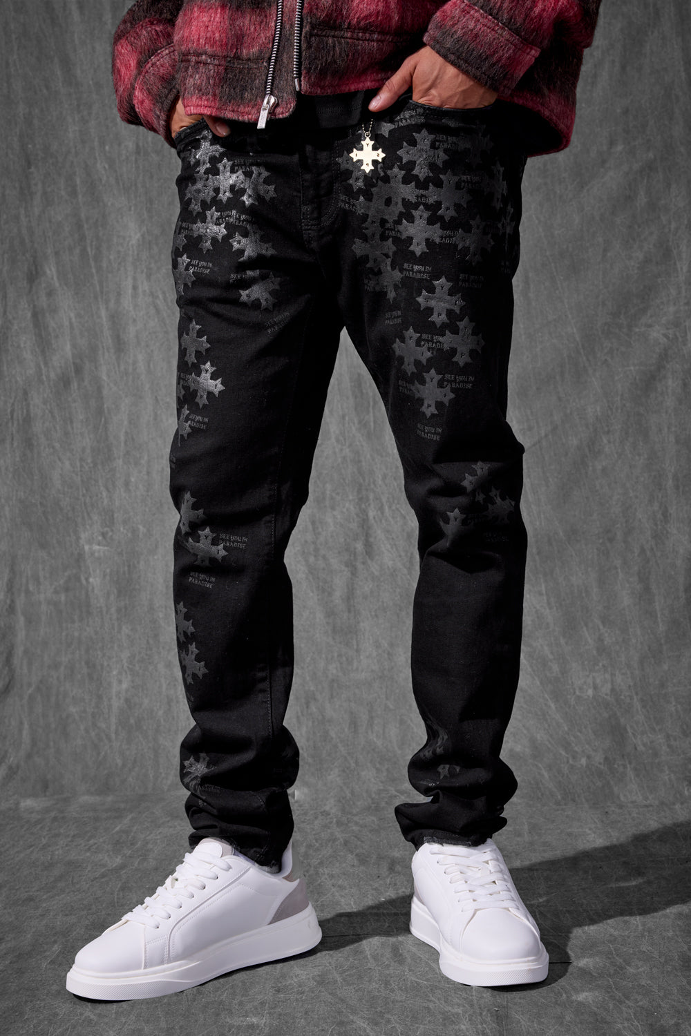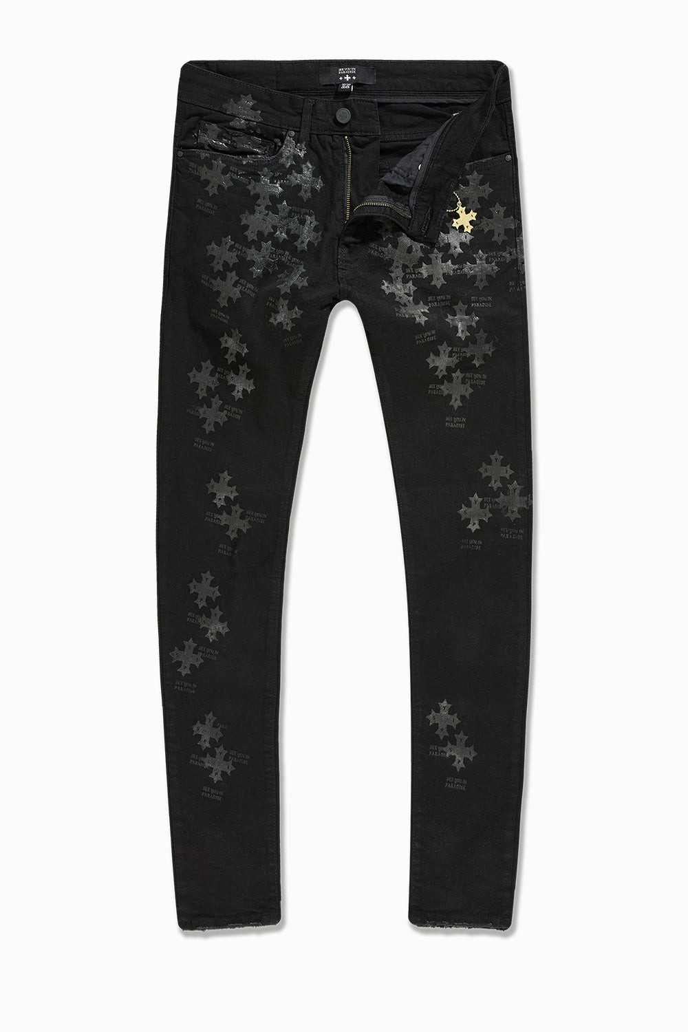 Our Slim Taper Paradise Denim was made for late nights, bright lights, and front-row moments. The fit is sharp—cut slim through the leg with a clean taper that stacks just right at the ankle. Each pair is built from a heavyweight stretch denim that holds its structure but moves like it’s made for motion. No sag, no drag—just a sleek profile that elevates whatever you throw on top. Available in five high-impact washes, these jeans are loud in the details, quiet in the delivery. From tonal stitchwork and refined distressing to brushed metal hardware and soft-touch finishes, every element is designed to catch attention without begging for it. Whether you’re pulling up to the function or stepping out for the night, this is statement denim for people who don’t have to try too hard.