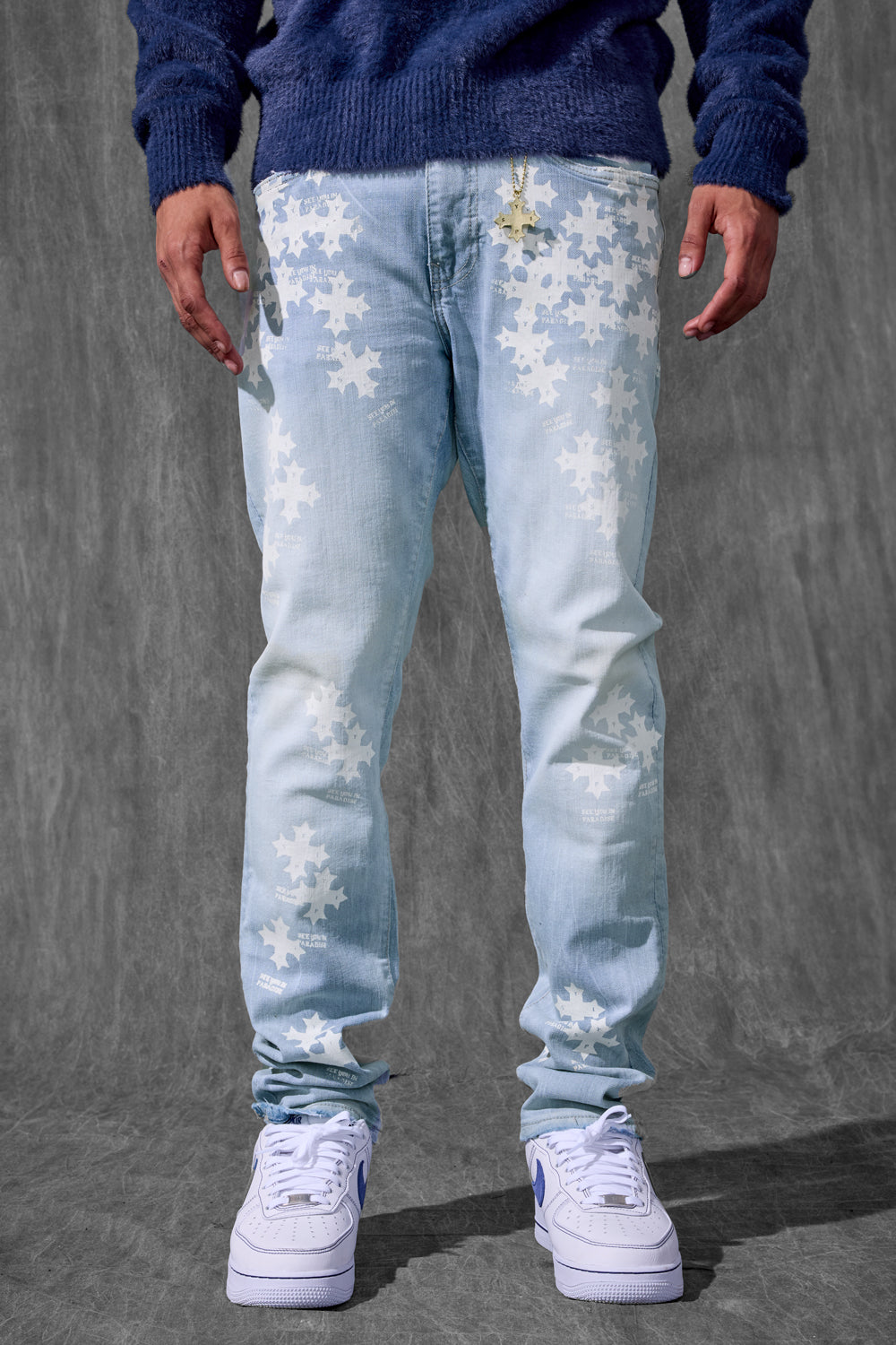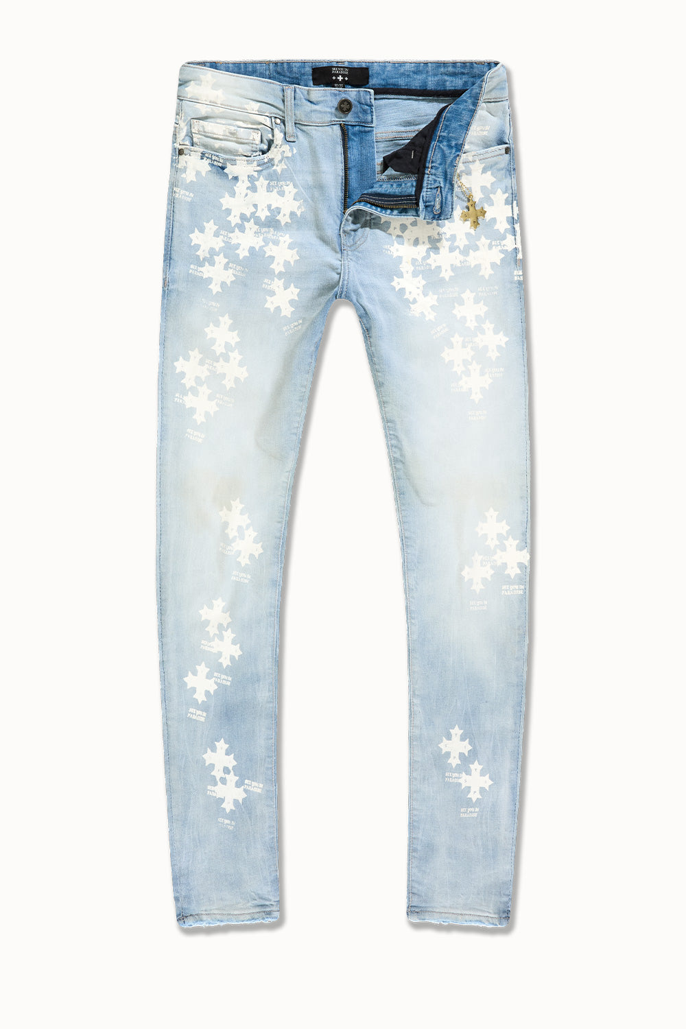 Our Slim Taper Paradise Denim was made for late nights, bright lights, and front-row moments. The fit is sharp—cut slim through the leg with a clean taper that stacks just right at the ankle. Each pair is built from a heavyweight stretch denim that holds its structure but moves like it’s made for motion. No sag, no drag—just a sleek profile that elevates whatever you throw on top. Available in five high-impact washes, these jeans are loud in the details, quiet in the delivery. From tonal stitchwork and refined distressing to brushed metal hardware and soft-touch finishes, every element is designed to catch attention without begging for it. Whether you’re pulling up to the function or stepping out for the night, this is statement denim for people who don’t have to try too hard.