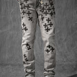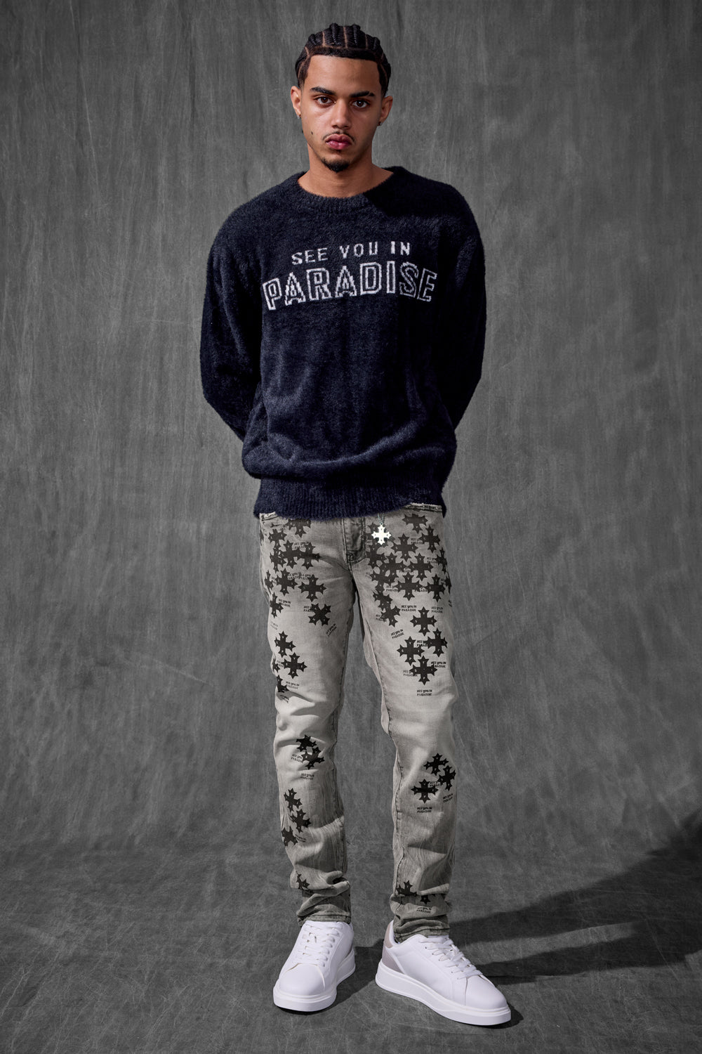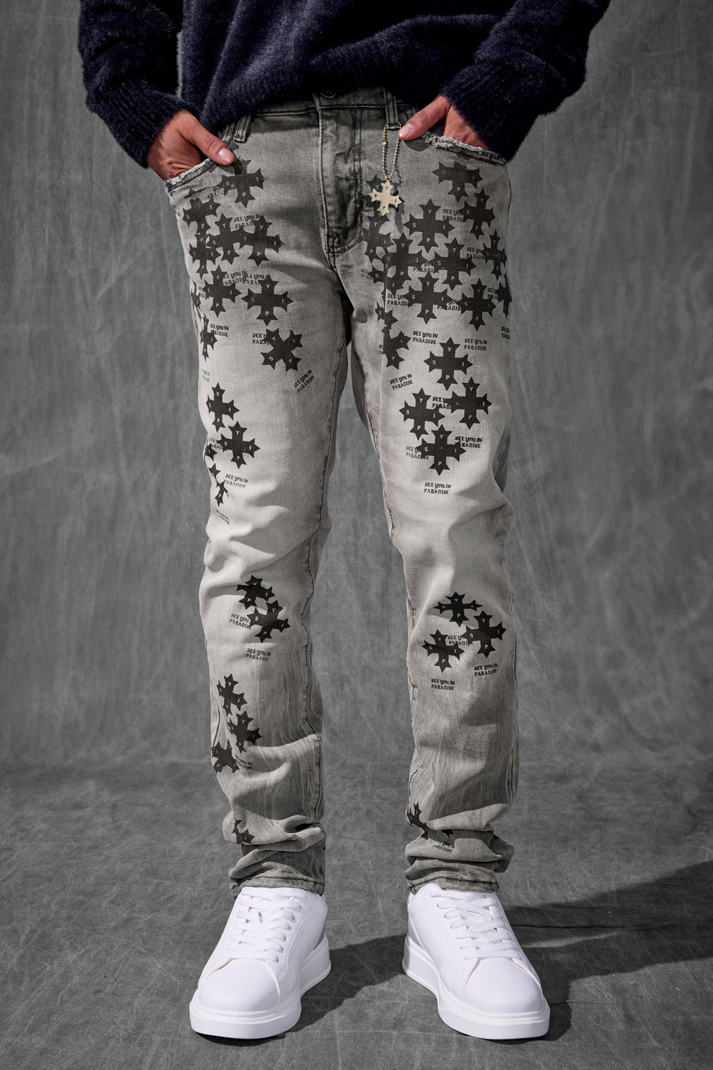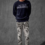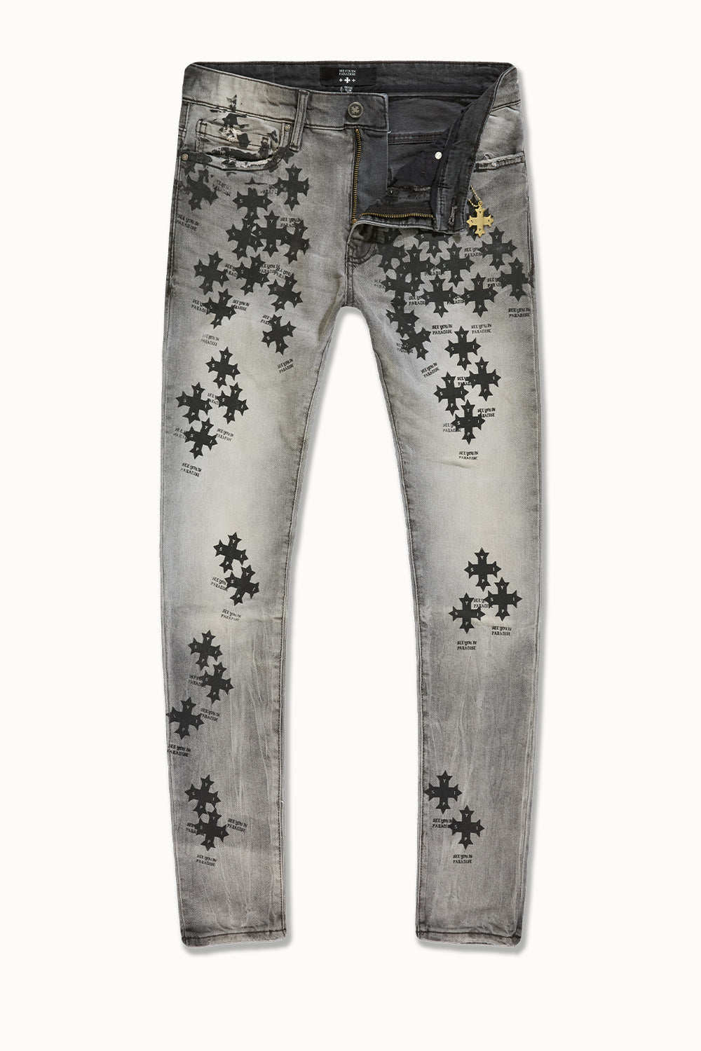 Our Slim Taper Paradise Denim was made for late nights, bright lights, and front-row moments. The fit is sharp—cut slim through the leg with a clean taper that stacks just right at the ankle. Each pair is built from a heavyweight stretch denim that holds its structure but moves like it’s made for motion. No sag, no drag—just a sleek profile that elevates whatever you throw on top. Available in five high-impact washes, these jeans are loud in the details, quiet in the delivery. From tonal stitchwork and refined distressing to brushed metal hardware and soft-touch finishes, every element is designed to catch attention without begging for it. Whether you’re pulling up to the function or stepping out for the night, this is statement denim for people who don’t have to try too hard.