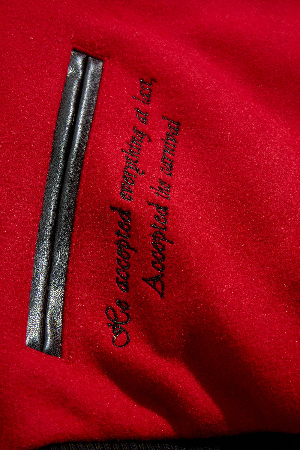 - Vegan leather sleeves and collar