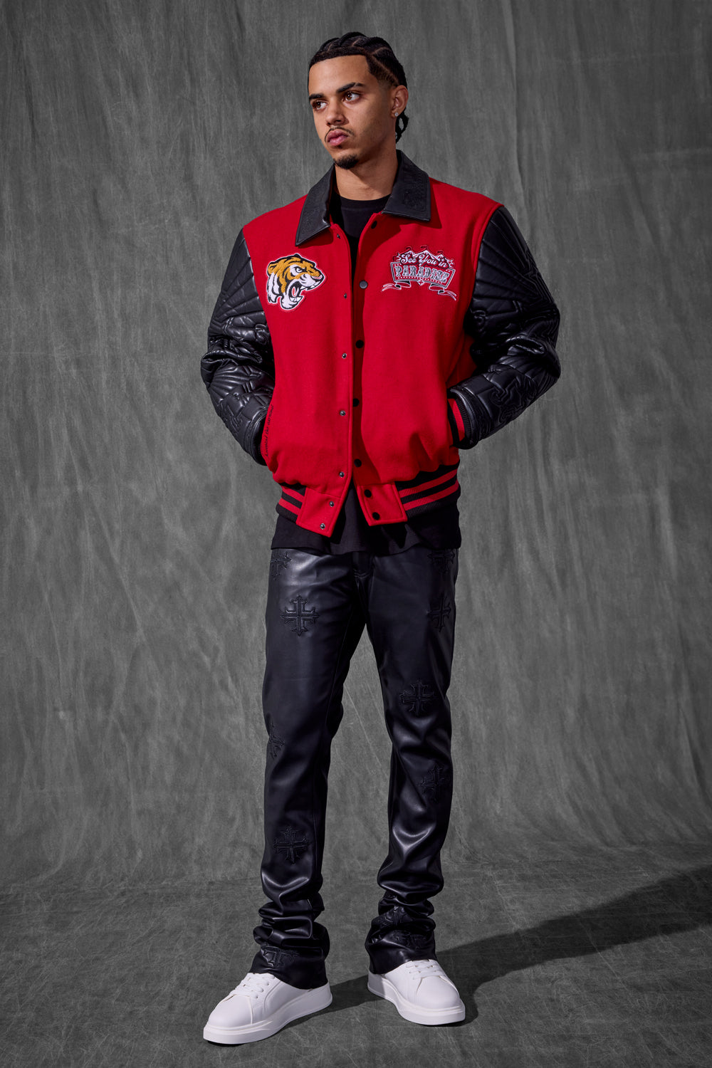 - Varsity jacket silhouette
