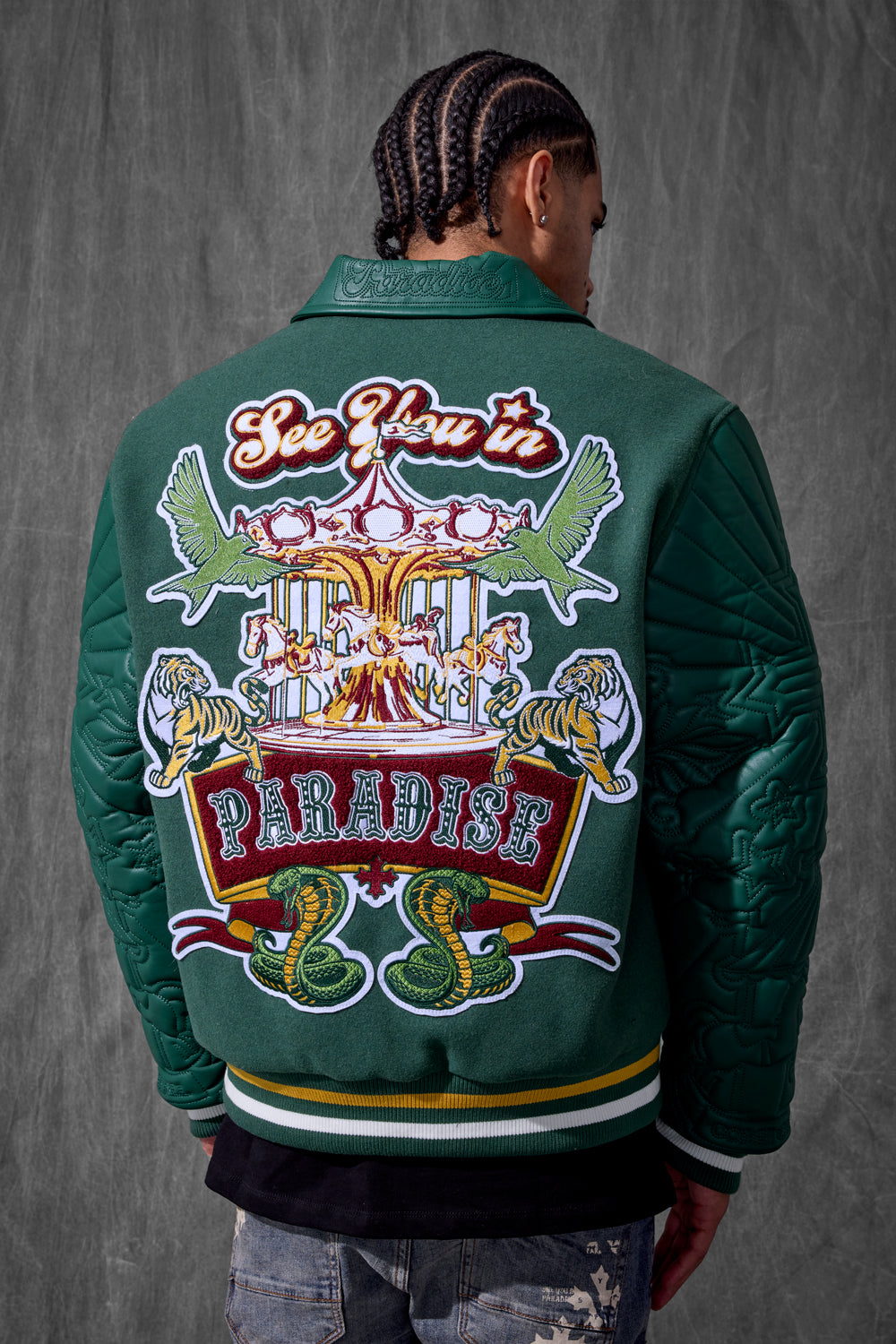 Smoke & Mirrors Varsity Jacket (Dark Green)