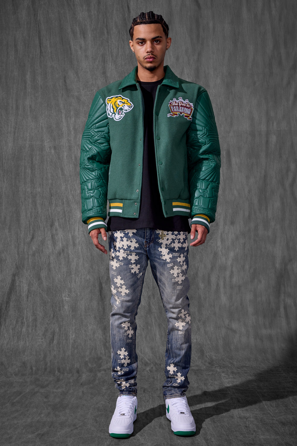 - Varsity jacket silhouette