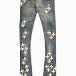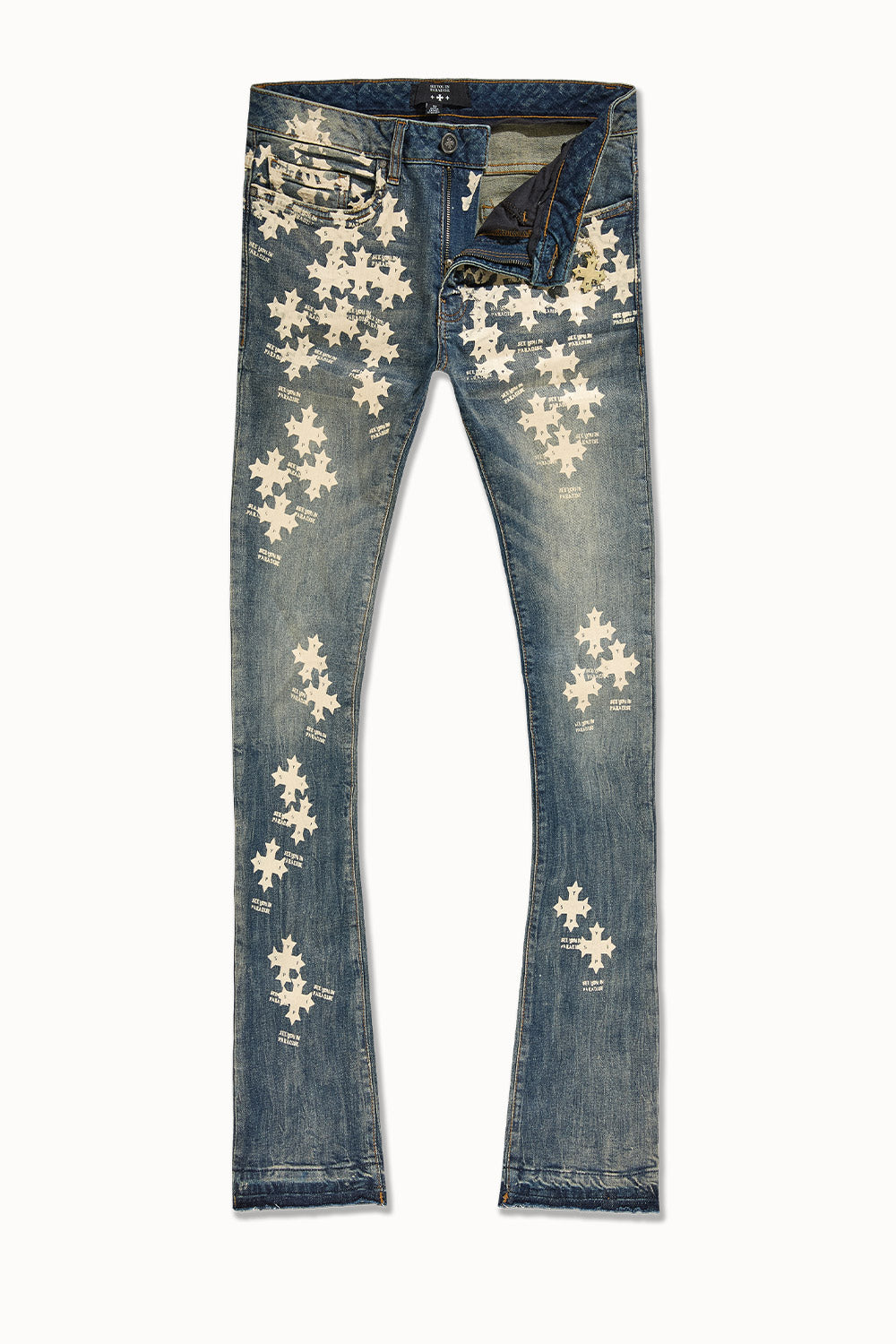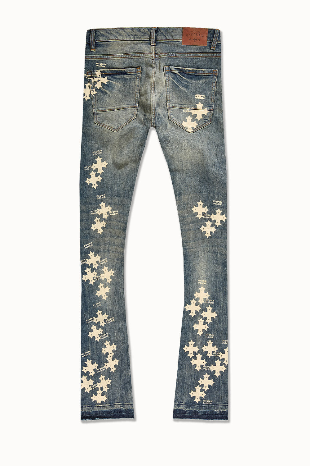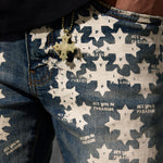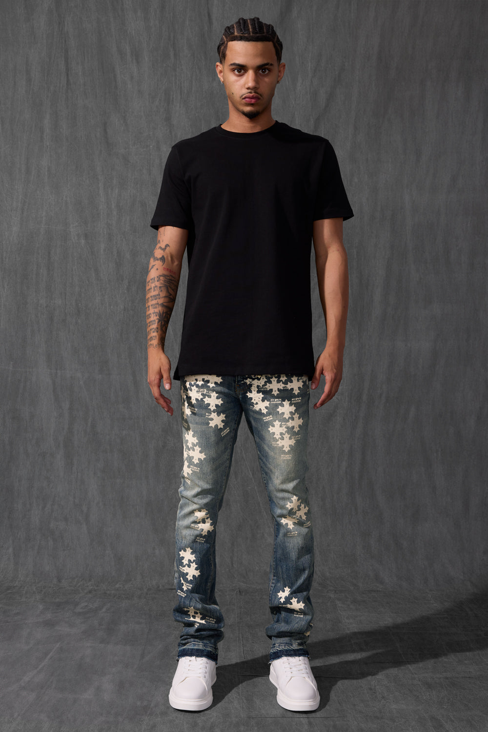 This is your passport to Paradise—where fit, finish, and attitude all meet. Cut super skinny through the thigh and knee with added length for that effortless stack at the ankle, these jeans are designed to show out without trying too hard. The fabric’s heavyweight with a serious stretch game, locking in a sculpted fit that moves like it was made for you. It’s sharp, it’s loud, and it’s built to bring heat when the sun goes down. Each pair is finished with tonal stitchwork, custom metal hardware, and washes that range from deep shadowy tones to iced-out fades—meant to reflect the highs and lows of city nightlife. You’re not just wearing denim—you’re setting a tone. Whether you’re posted on rooftops or pushing past the velvet rope, the Super Skinny Stacked Paradise Denim is made for main character energy.