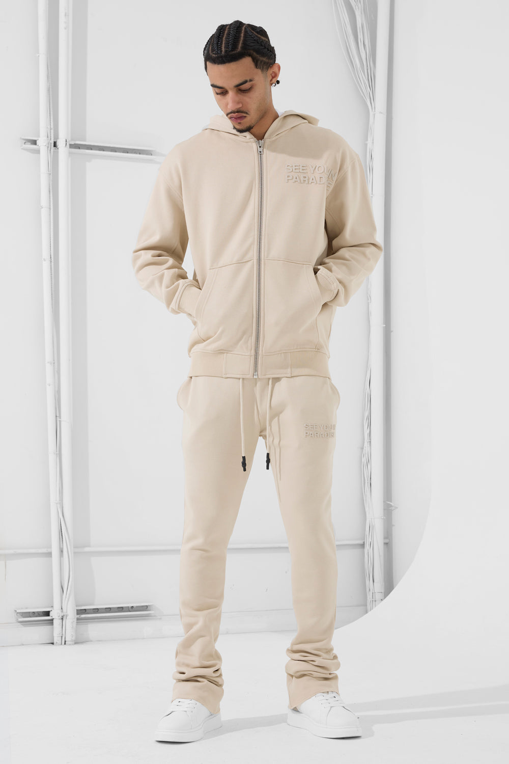 SYIP Tonal Zip Up Hoodie (Taupe Cream)