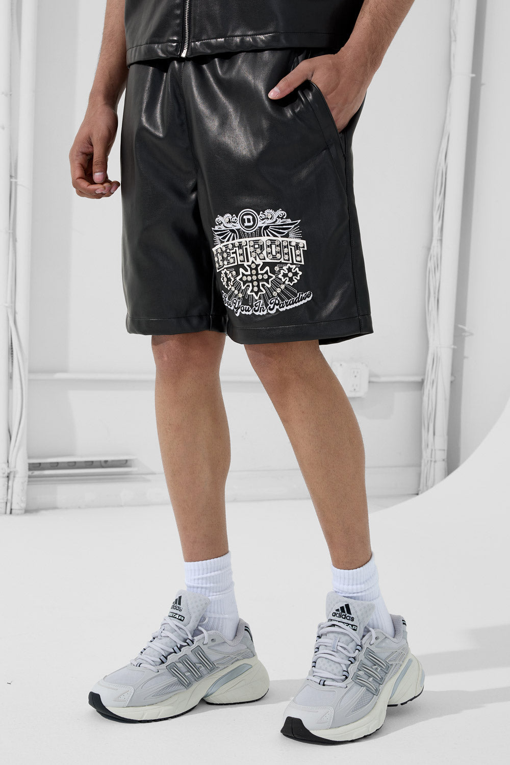 - Embossed "Detroit" on left thigh
