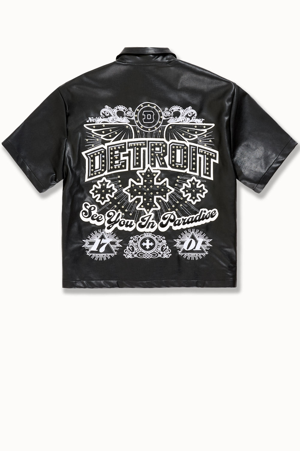 - Embossed "Detroit" on front left chest and back