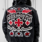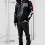 - Embellished with rhinestone, embroidery and Chenille patches through